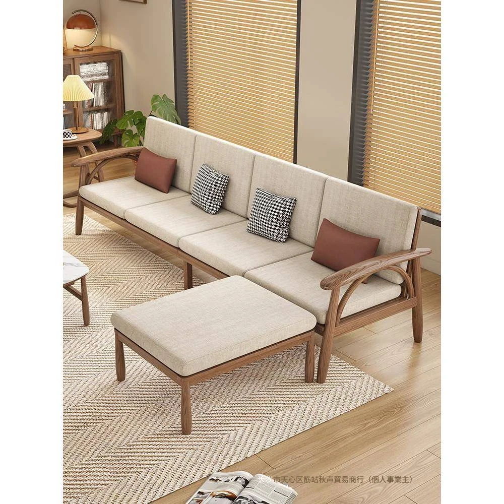 スカンジナビア風全自然木アッシュウッドソファ - 冬夏両用の新中式モダンシンプルデザイン、小型リビングにぴったりな三人掛けソファ!快適さとスタイルを両立させた理想の家具です。