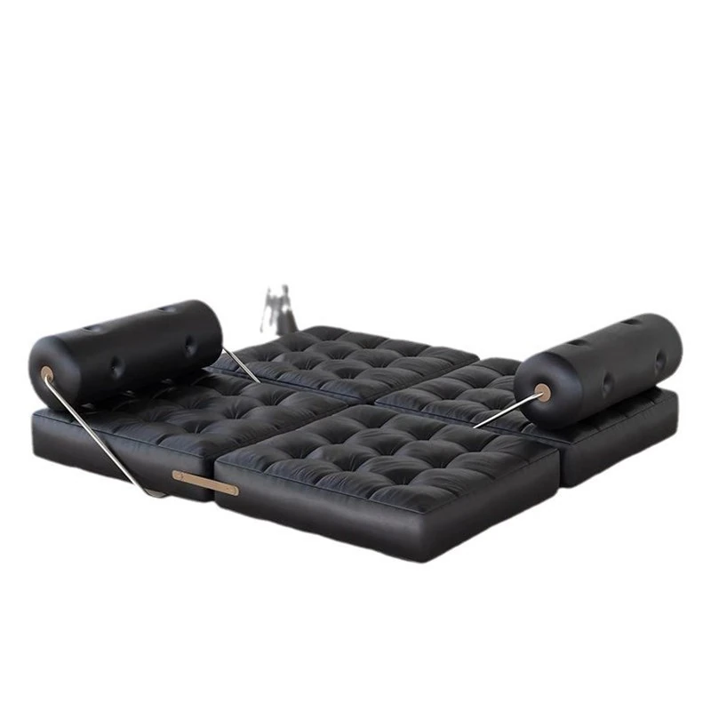 夏図の大黒牛ソファ - 本革使用のイタリアンミニマリズム!小型リビングにぴったりの豆腐ブロックデザイン、シックなブラックで洗練された空間を演出。快適さとスタイルを両立した一品です。