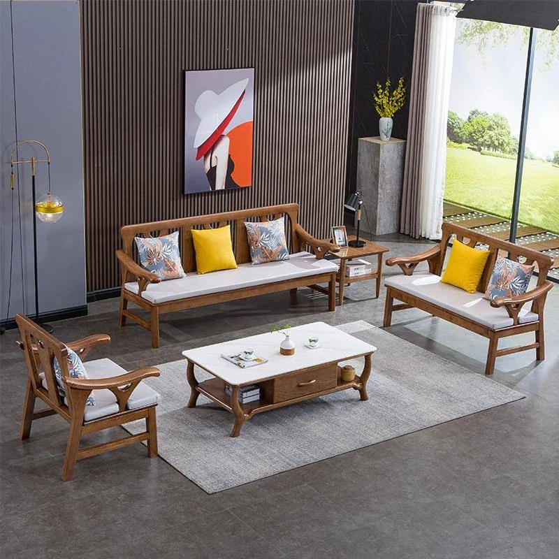 全実木製ソファ モダン和風 小型住宅向け ナチュラルな雰囲気 中式実木ソファ セット 簡約デザインの家具で居心地の良いリビング空間を実現!