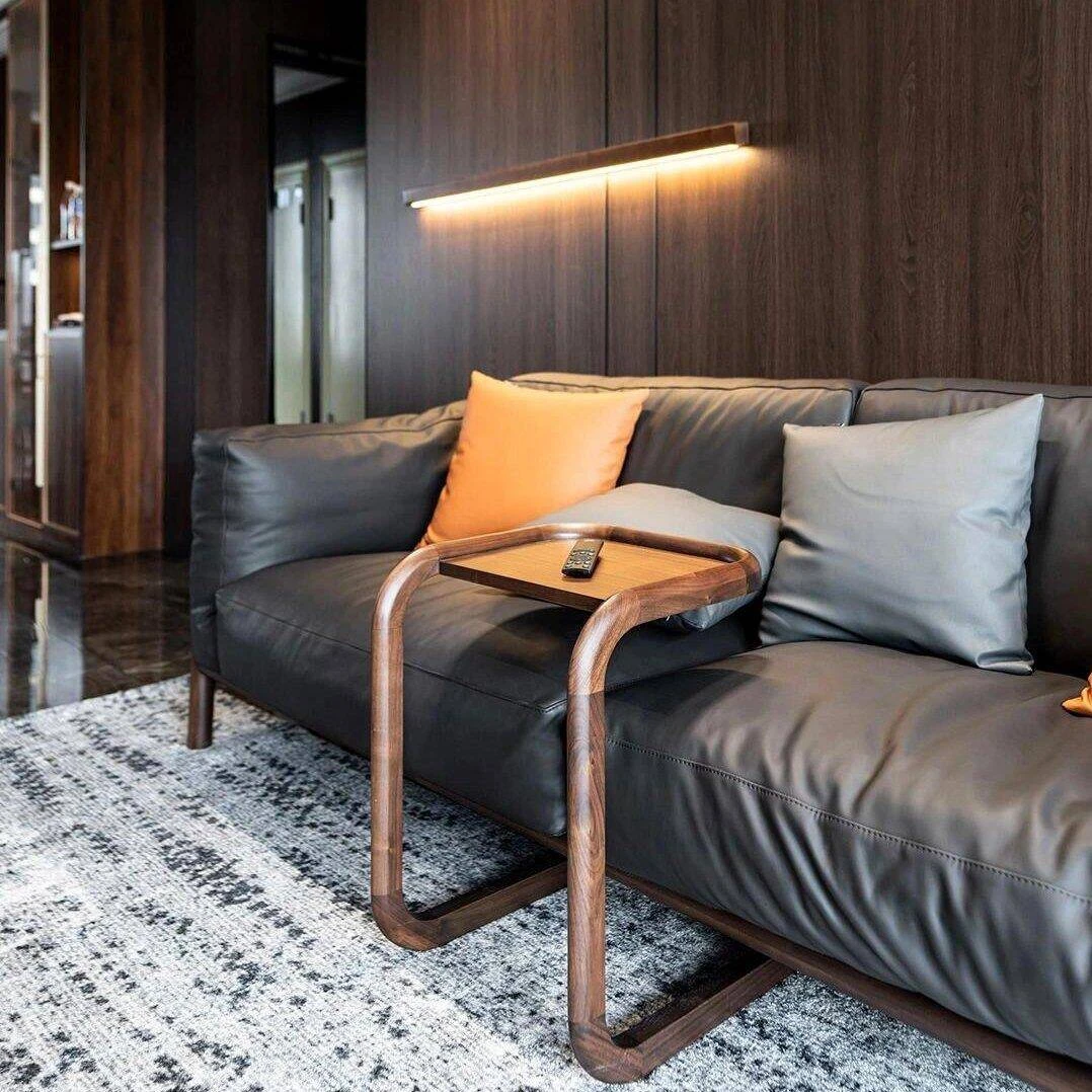 北米産ブラックウォールナットソファとコーヒーテーブルのセット - シンプルなデザインでオフィスやリビングに最適!ホワイトアッシュ材の直線的なスタイルで、大小さまざまなお部屋にぴったりの家具。