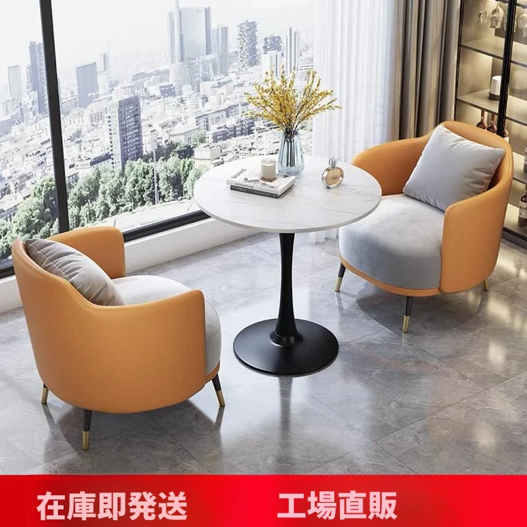 人気の不動産営業所用テーブル&チェアセット!リラックスできる接客スペースにぴったりなオフィスソファとティーテーブルのコンビネーション。小さなラウンドテーブルと2脚の椅子で、快適な商談を実現します!
