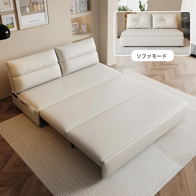 スマート電動ソファベッド|リクライニング&折りたたみ可能|クリーム風デザイン|人気のサイズで、リビングや寝室に最適な多機能家具!