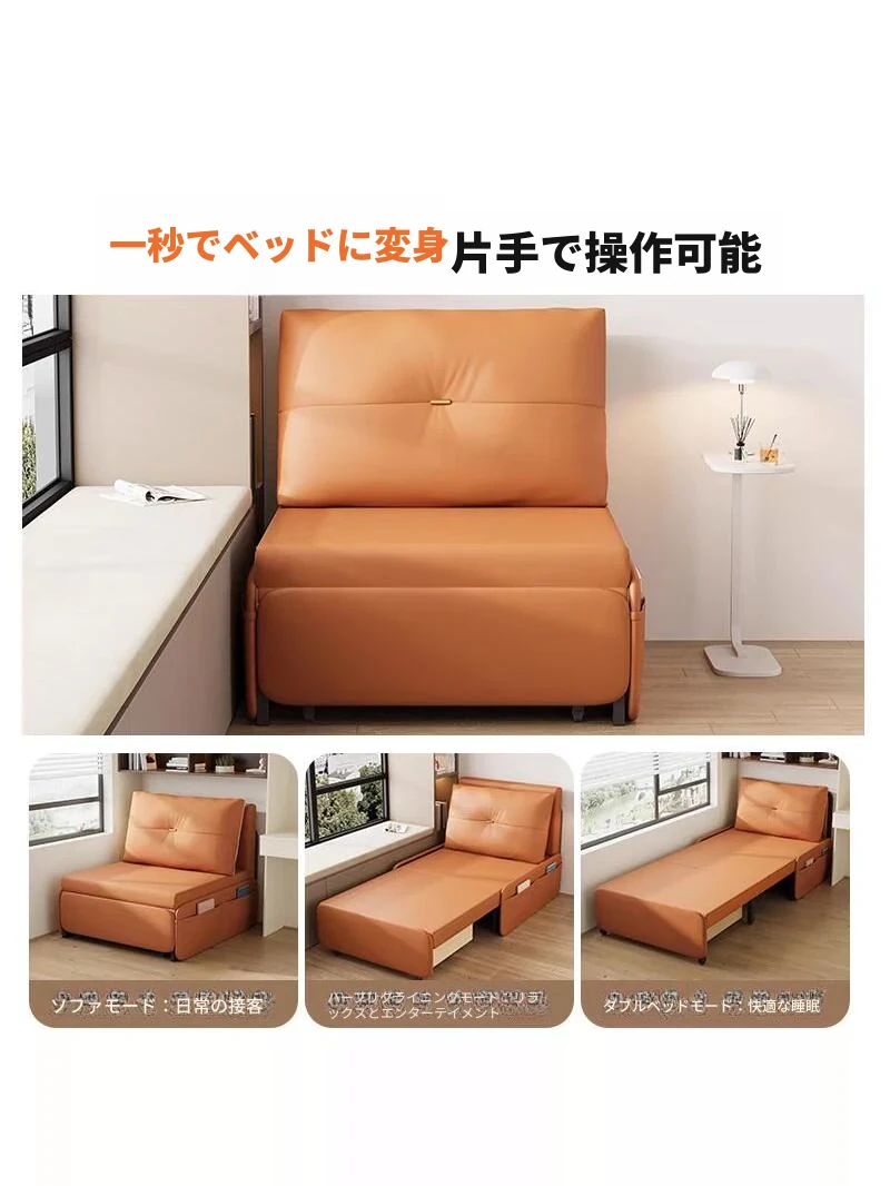[香港送料無料] 電動ソファベッド 本革製 リビングや書斎に最適!小型スペースにもぴったり!折りたたみ式 & 伸縮可能、多機能で快適な座り心地を実現!