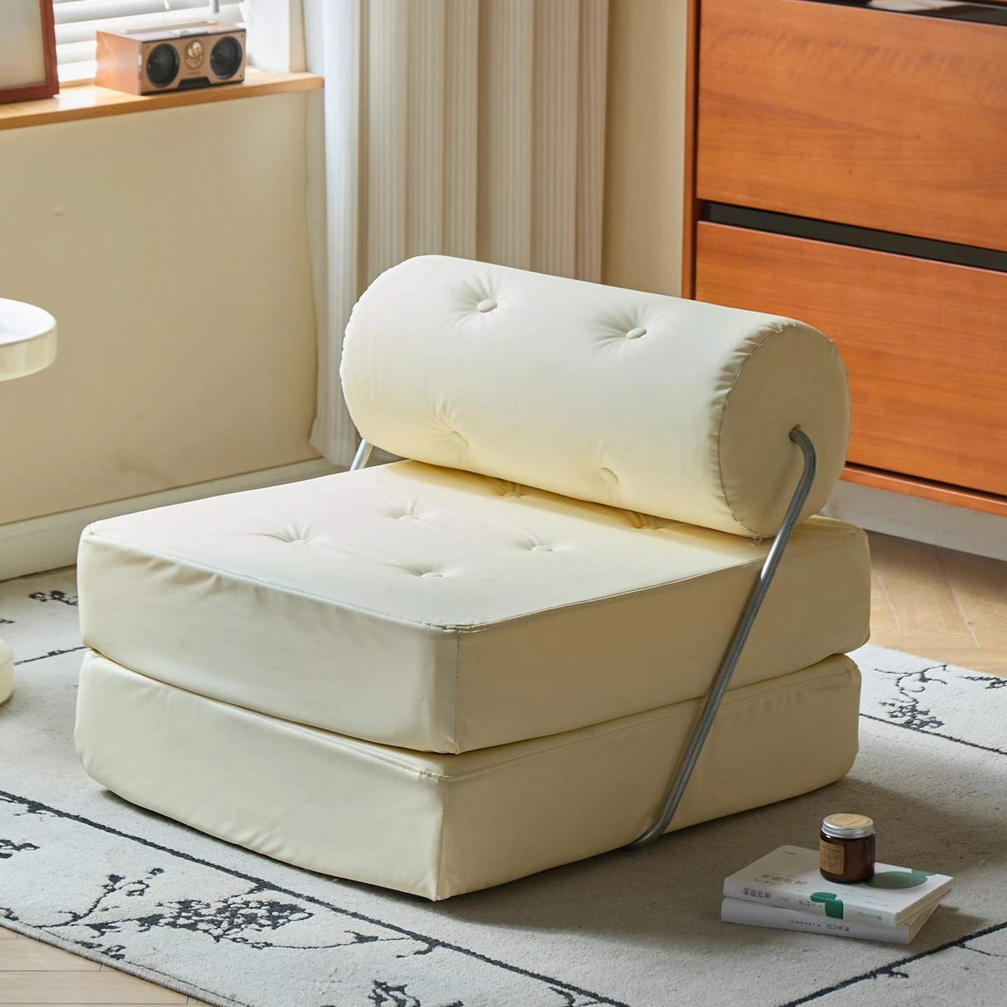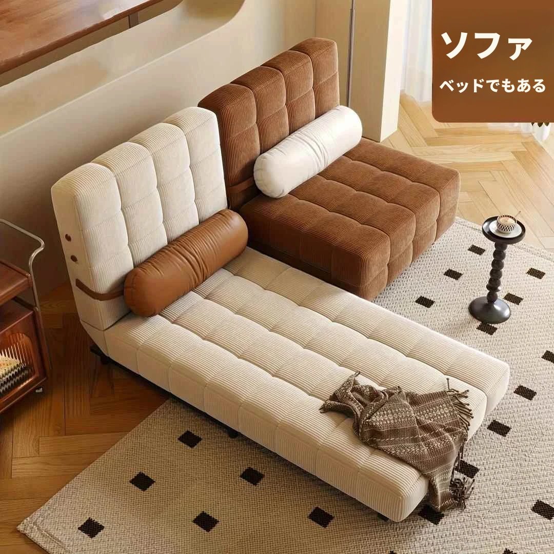 一人用折りたたみソファベッド|コンパクトなリビングに最適!タジ豆腐ブロックデザインのラグジュアリーなくつろぎ空間を実現。クリーミーな風合いで、どんなインテリアにもマッチ!