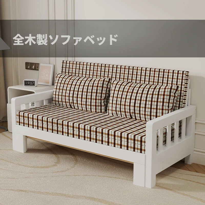 多機能ソファベッド - 実木製の折りたたみ式で、小さなリビングにも最適!シングルサイズで、座るだけでなく、引き出してベッドとしても使える優れたデザイン。限られたスペースを有効活用し、快適な睡眠とくつろぎの時間を提供します。