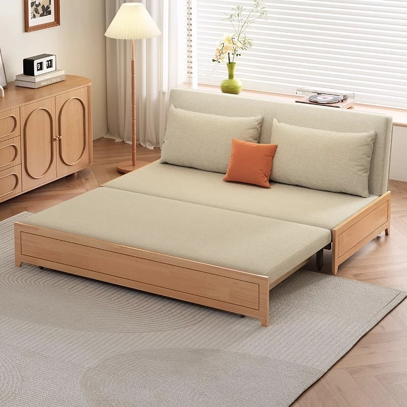 【香港送料無料】2024年新作!折りたたみ可能な実木ソファベッド - 小型住宅に最適なシングル&ダブル対応、リビングルームに多機能性をプラス!