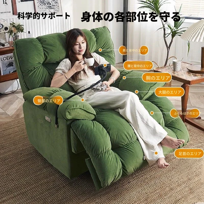 一人用電動リクライニングソファ|おしゃれで快適なリラックス空間を実現!狭いお部屋にもぴったりなマッサージ機能付き、バルコニーやリビングで心地よいひとときをお楽しみください。