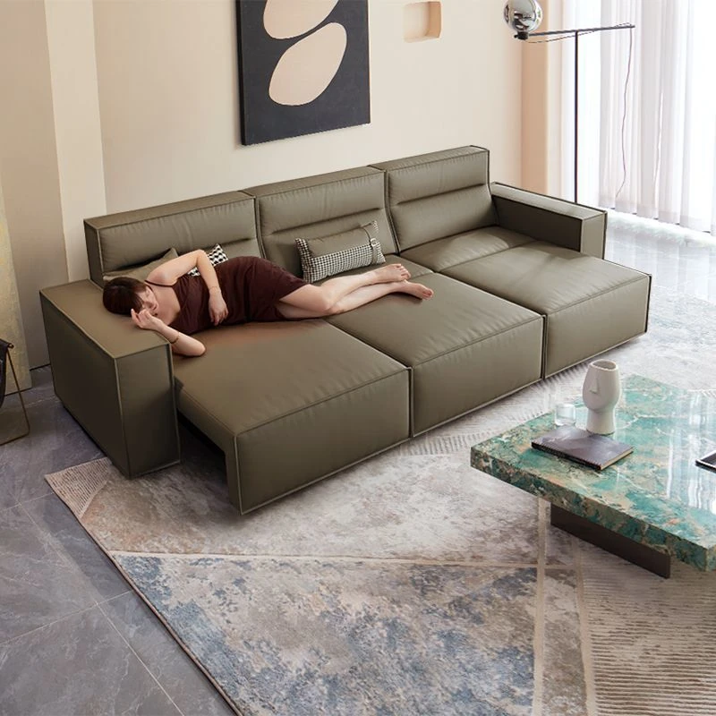 高級本革製電動ソファ|コンパクトなリビングに最適!調節可能な高背豆腐ブロックデザインで、快適な寝心地を実現。スタイリッシュで機能的なソファベッドで、あなたの空間をワンランクアップ!