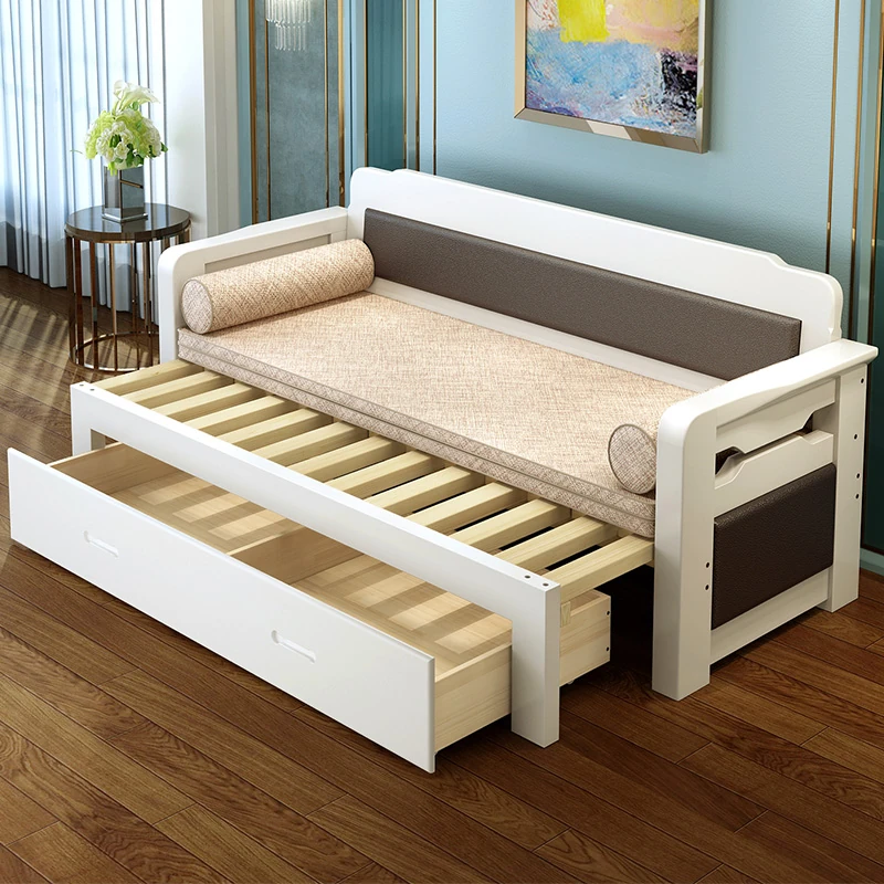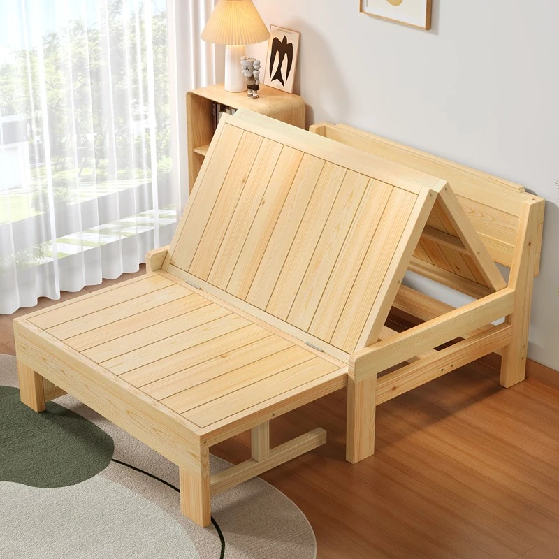折りたたみ式実木ソファベッド - 多機能デザイン!リビング、書斎、バルコニーに最適。1.2m、1.5m、1.8mのサイズから選べる小型住宅向けのダブルベッド。快適さとスタイルを両立させた一品!