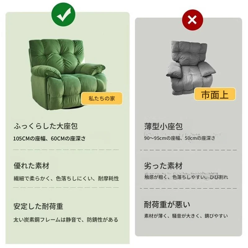 多機能リクライニングチェア - リラックスして眠れる!おしゃれな一人用ソファ、リビングルームに最適なラウンジチェア。快適さとスタイルを兼ね備えた最高の選択肢!
