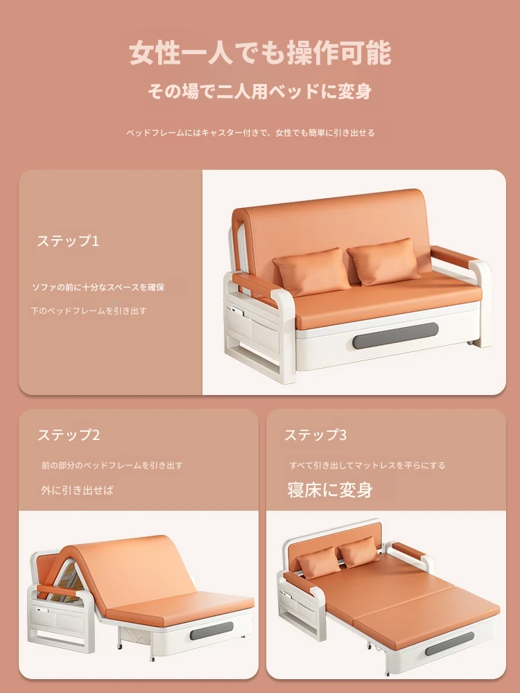 高品質なレトロデザインのソファベッド!折りたたみ式で小スペースにも最適な一体型、シングル/ダブル兼用!リビングや寝室をおしゃれに演出し、快適な眠りを提供します。