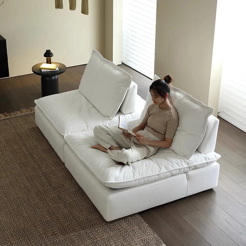 小型リビングに最適!デザイナーによるモダンミニマルな布製ソファ - 雲のような心地よさを提供するユニークな形状のシャニールソファ。あなたの空間をおしゃれに彩ります!