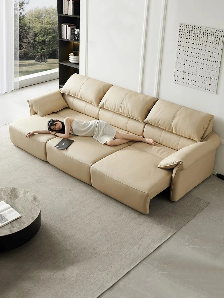 クリーム風味のVプラン大象耳リアルレザーソファ、全自動スマート伸縮ソファベッド、4メートルの長さでリビングルームに最適!快適さとスタイルを兼ね備えた極上の居心地をお楽しみください。
