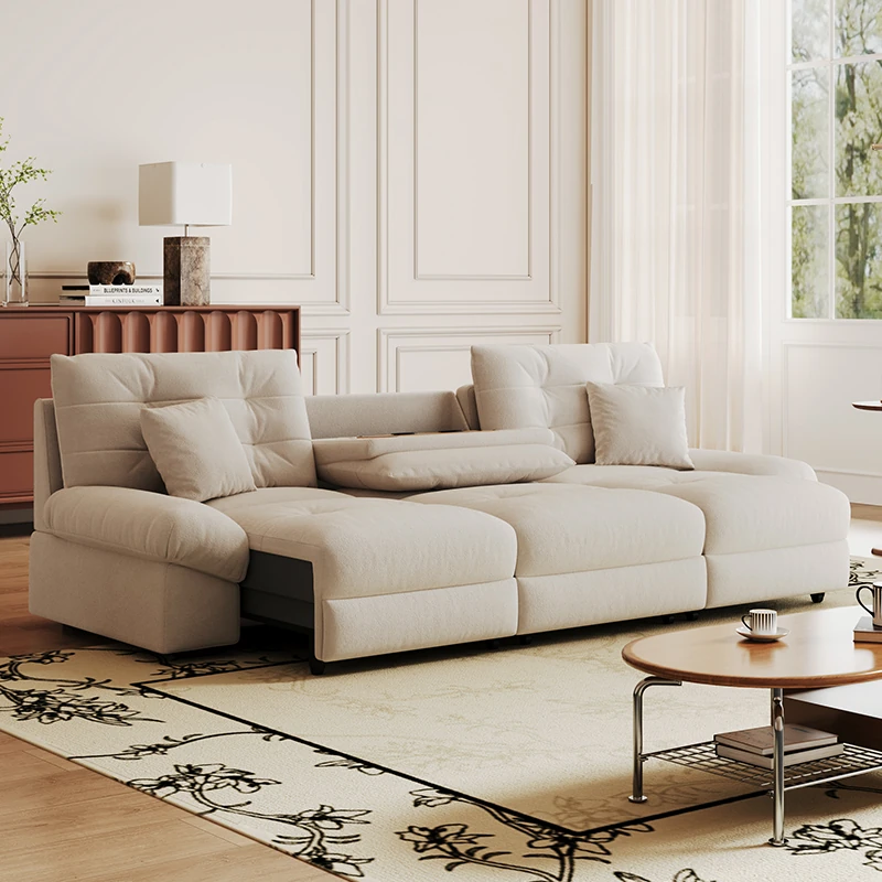 話題の雲朵ソファ!クリーム風デザインのモダンでシンプルなリビング用、猫の爪とぎにも最適なフリース素材の電動伸縮ラウンジソファ。快適さとスタイルを両立させた、あなたのくつろぎ空間にぴったり!