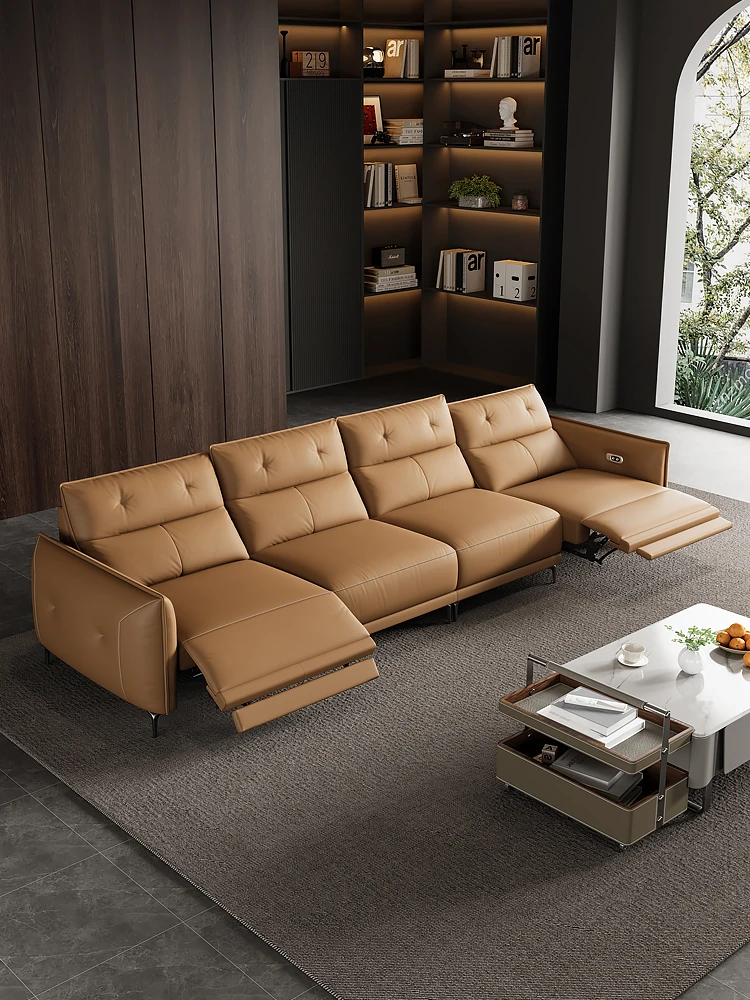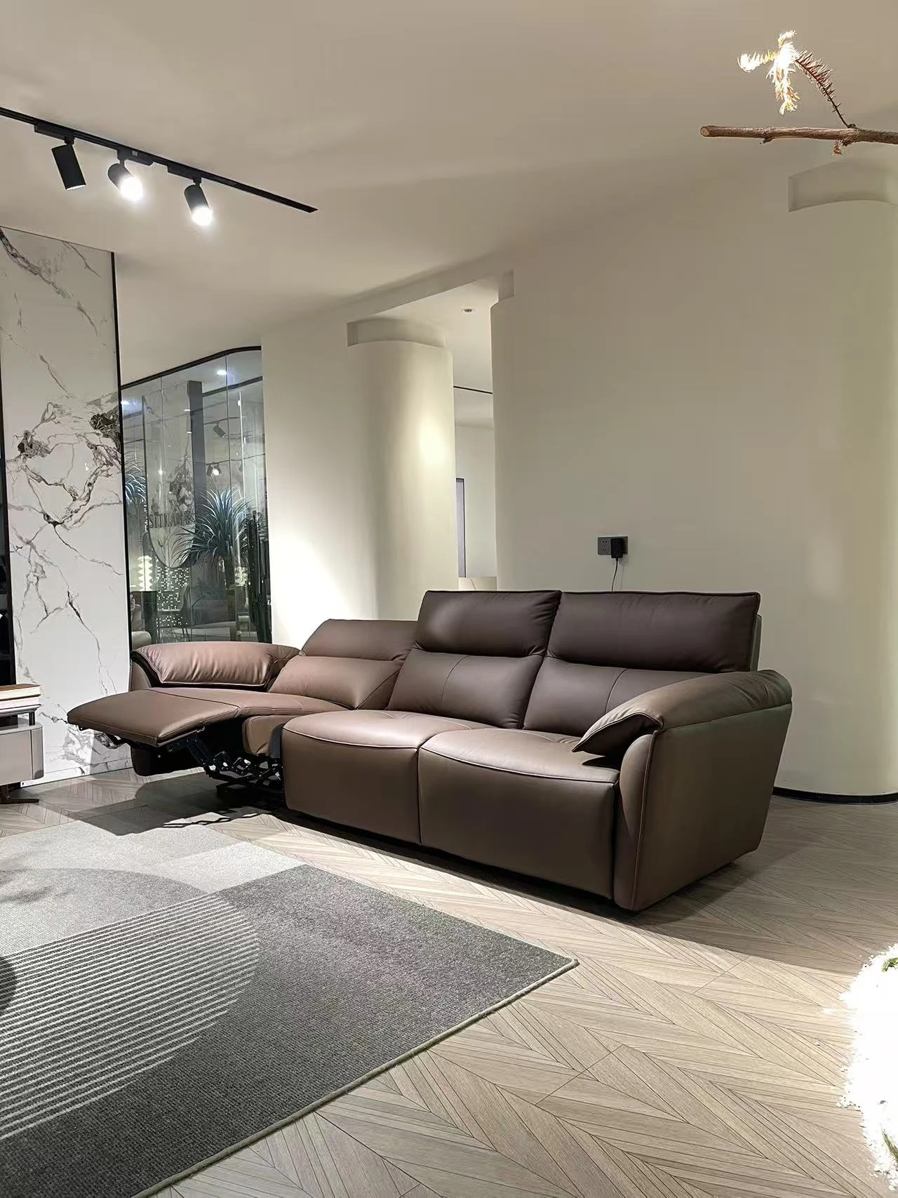 2025年新作!現代的シンプルなデザインの電動多機能レザーソファ - 高級本革使用、快適さとスタイルを兼ね備えたリビングの必需品!