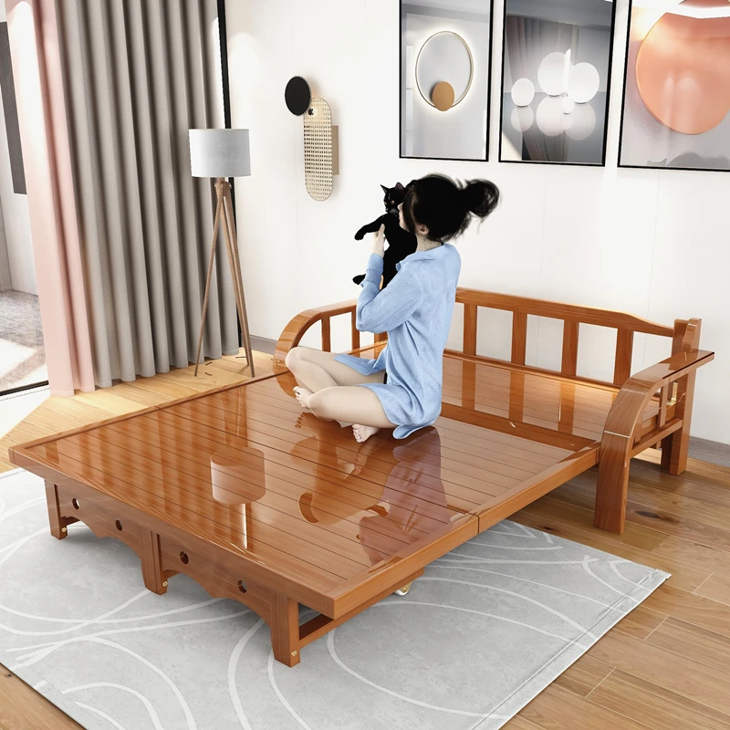 【香港送料無料】折りたたみ式の実木ソファベッド!プル式中華風ローハンベッド、小型リビングにぴったり!スペースを有効活用し、快適な寝心地を実現!