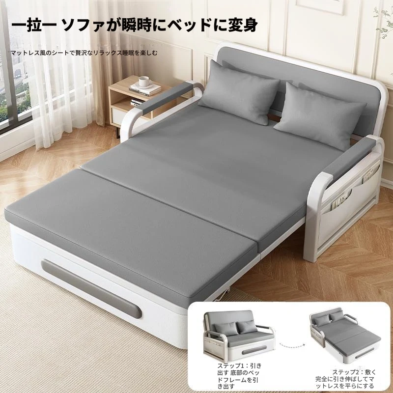 折りたたみソファベッド【2023新作】小型バルコニー向け、ネットで話題のデザイン!テクノロジー布使用、伸縮自在で多機能なダブルベッド。省スペースでおしゃれな生活を実現!