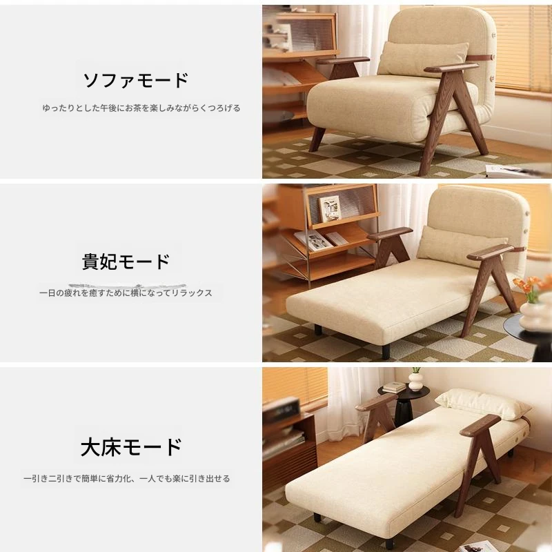 【香港送料無料】おしゃれで機能的な折りたたみソファベッド!小型スペースにもぴったりの多機能カウチとシングルベッド、天然木使用でシンプルなデザイン。快適な睡眠とリラックス空間を実現!