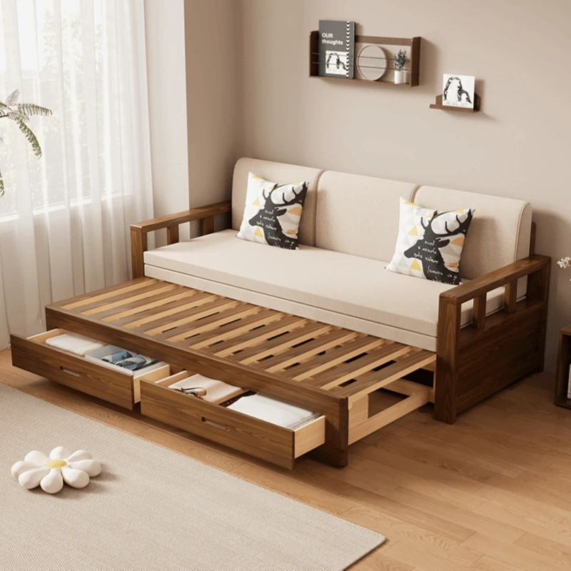 多機能ウッドソファベッド 1.5m・1.8m対応!リビングにぴったりの折りたたみ式、コンパクトで経済的なデザイン。快適な休息空間を提供し、スマートな収納が可能です!