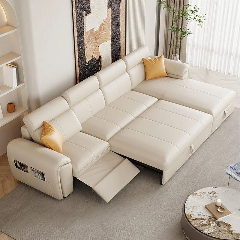 電動多機能本革ソファベッド - イタリアンデザインのシンプルでモダンな折りたたみコンビネーション、贅沢な牛革を使用したリビングにぴったりのアイテム!