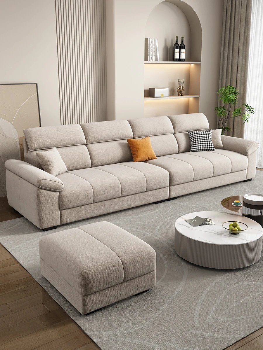 クリーム風抗菌コットンリネンの侘び寂びデザインソファ、2025年新作!モダンでシンプルなスタイル、小さな部屋にもぴったりな4人掛け。快適さと美しさを兼ね備えたリビングの主役に!