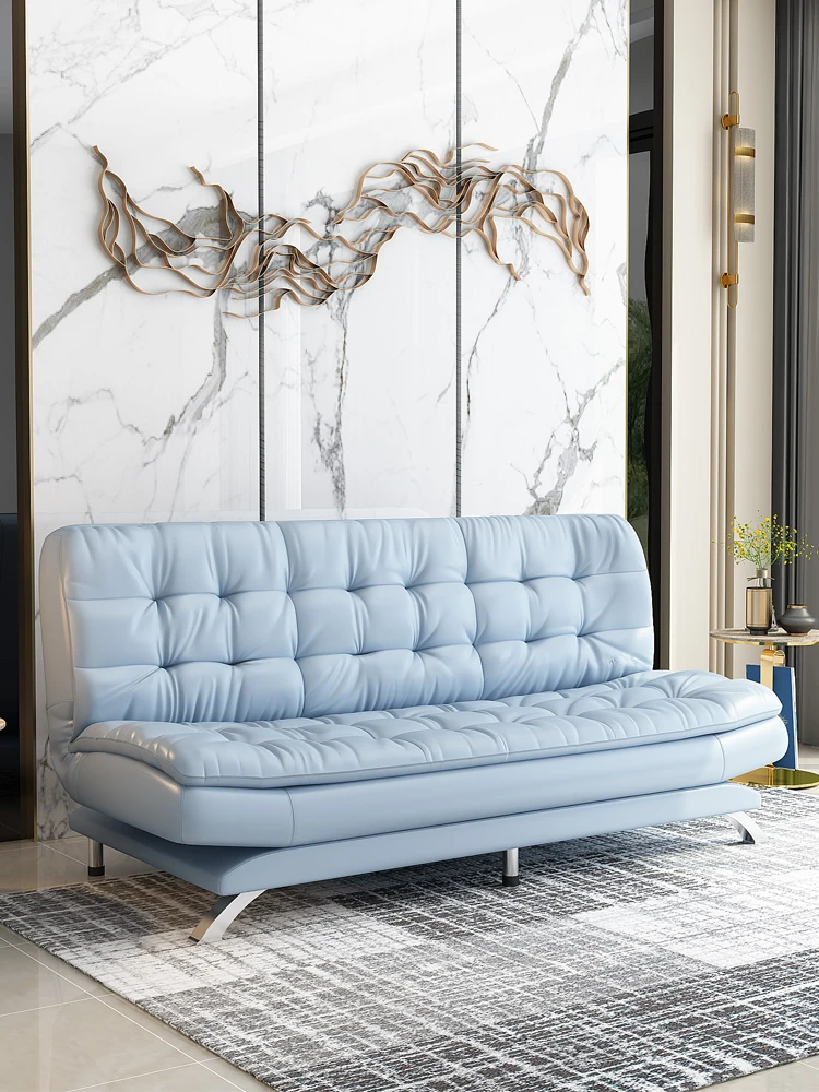 Genuine Leather Sofa - Modern Minimalist 3-Seater for Small Spaces, Perfect for Living Rooms & Offices, Features Top-Grade Cowhide and Convertible Bed Function