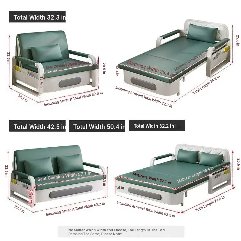 【Free Shipping to Hong Kong】Versatile Solid Wood Sofa Bed - Foldable and Space-Saving for Small Living Rooms, with Stylish Metal Frame and Pull-Out Design