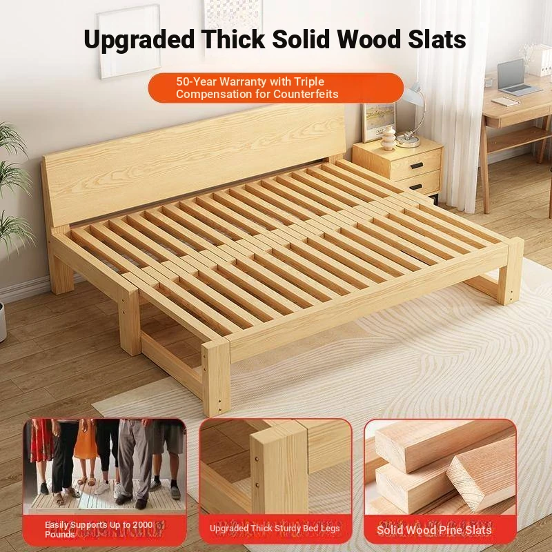 All-Massive Wood Pull-Out Bed - Multi-Functional Folding Sofa Bed for Small Spaces, Easy Assembly Tatami Style, Perfect for Compact Living!