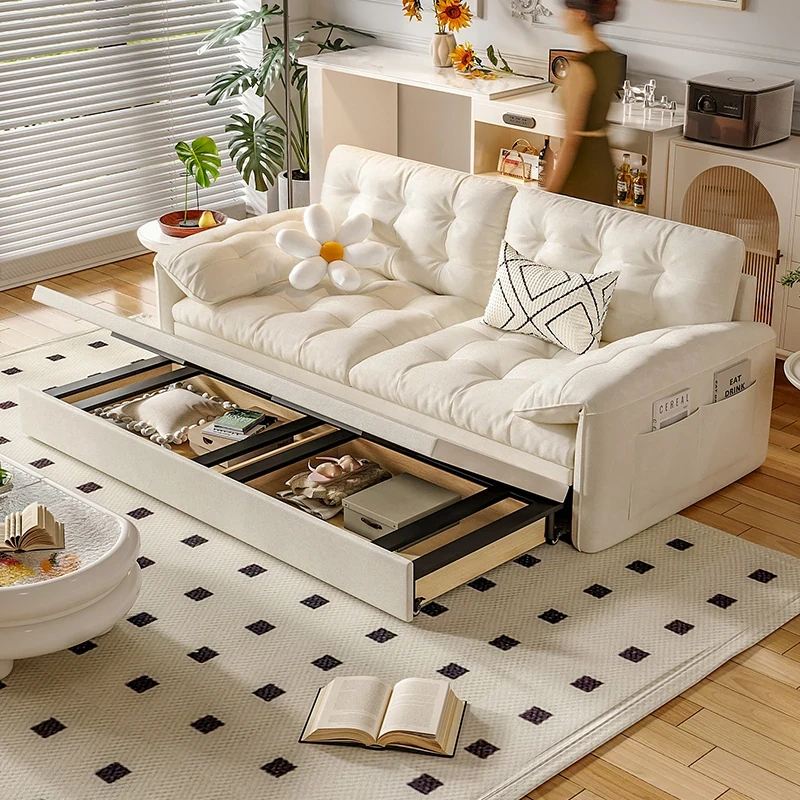 [Free Shipping to Hong Kong] French Cream Sofa Bed - Space-Saving, Retro Multifunctional Foldable Single Sofa for Small Living Rooms