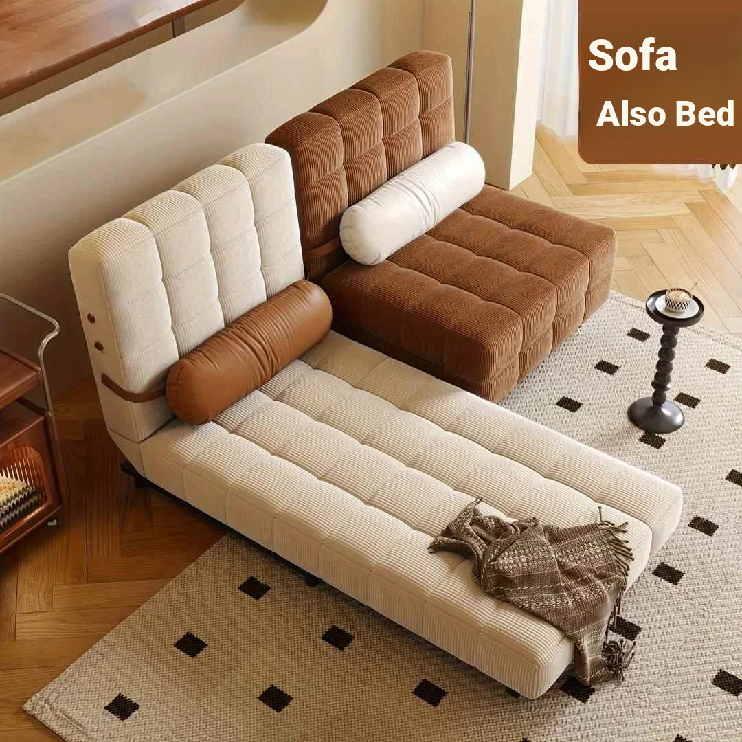 "Free Shipping in Hong Kong: Creamy Cozy Sofa Bed - Multifunctional Space-Saver for Small Living Rooms & Trendy Balconies"