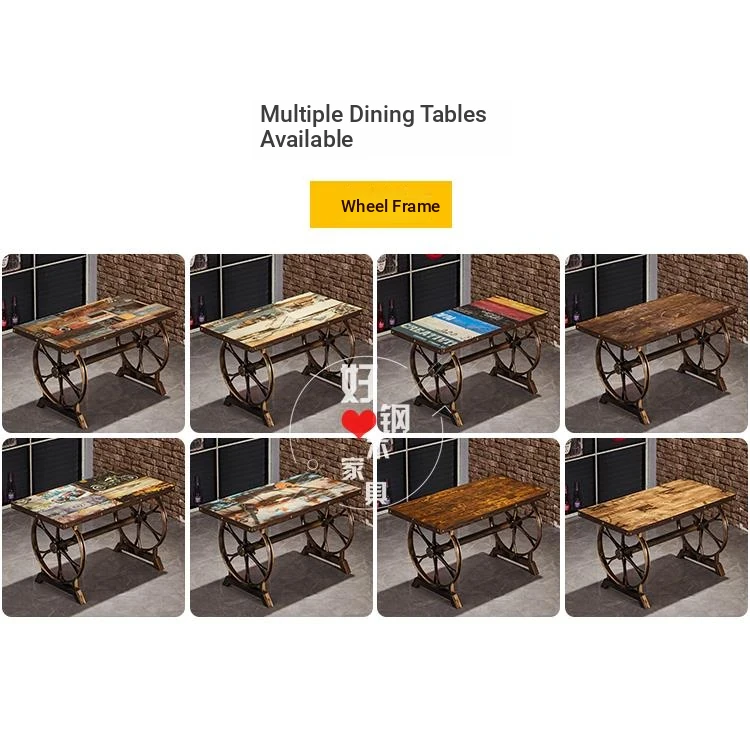 Vintage Industrial Style Restaurant Coffee Fast Food Table and Chair Set - Commercial Dining Furniture for BBQ and Spicy Hot Pot
