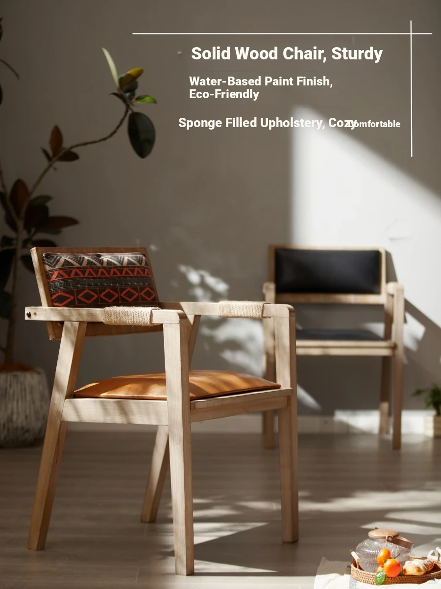 Vintage Minimalist Solid Wood Dining Chair with Soft Cushion - Designer Backrest for Home, Coffee Shops, and Hotels - Perfect for Study Desks and Cozy Retreats