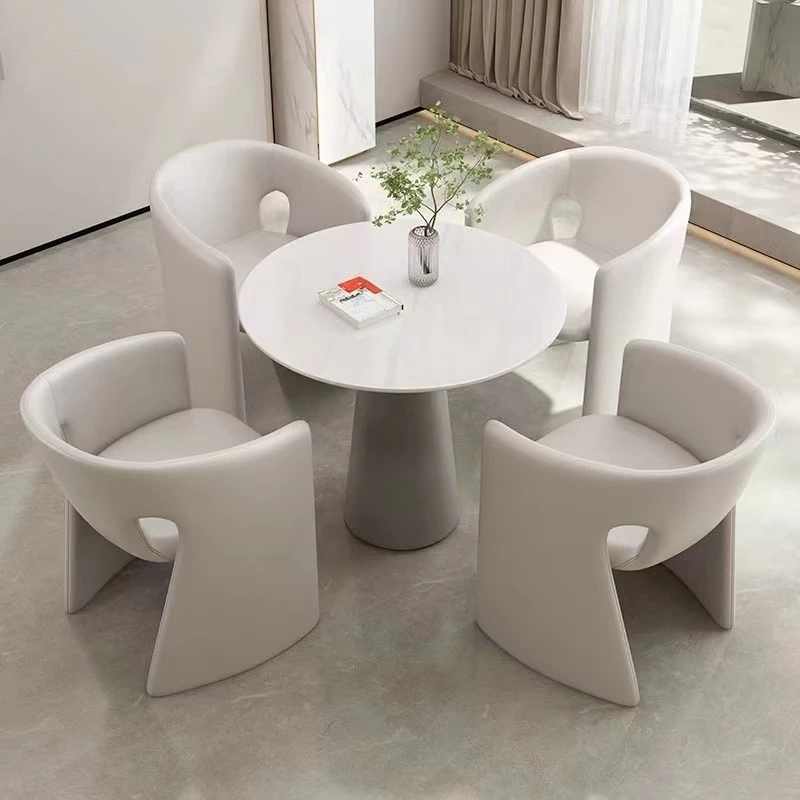 Elegant Negotiation Table Set with One Round Table and Four Chairs - Modern Nordic and New Chinese Style with Sofa for Real Estate Sales Office