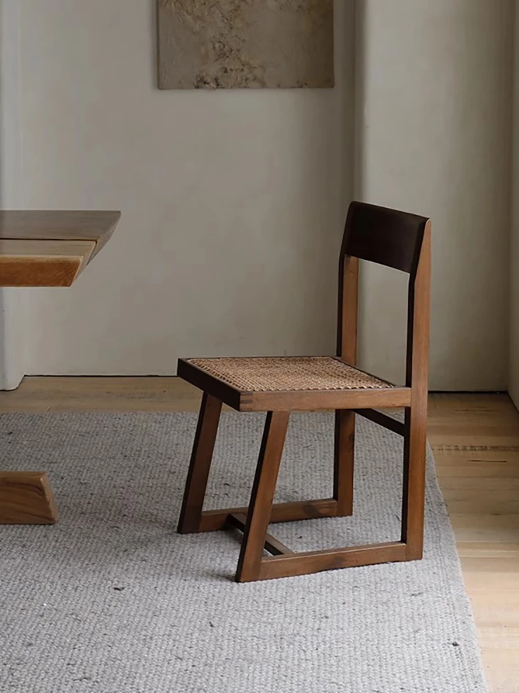 Reze Solid Wood Dining Chair with Rattan Backrest - Stylish Balcony Leisure Chair in Wabi-Sabi Style, Perfect for Guesthouses and Vintage Decor - Chandigarh-Inspired Design