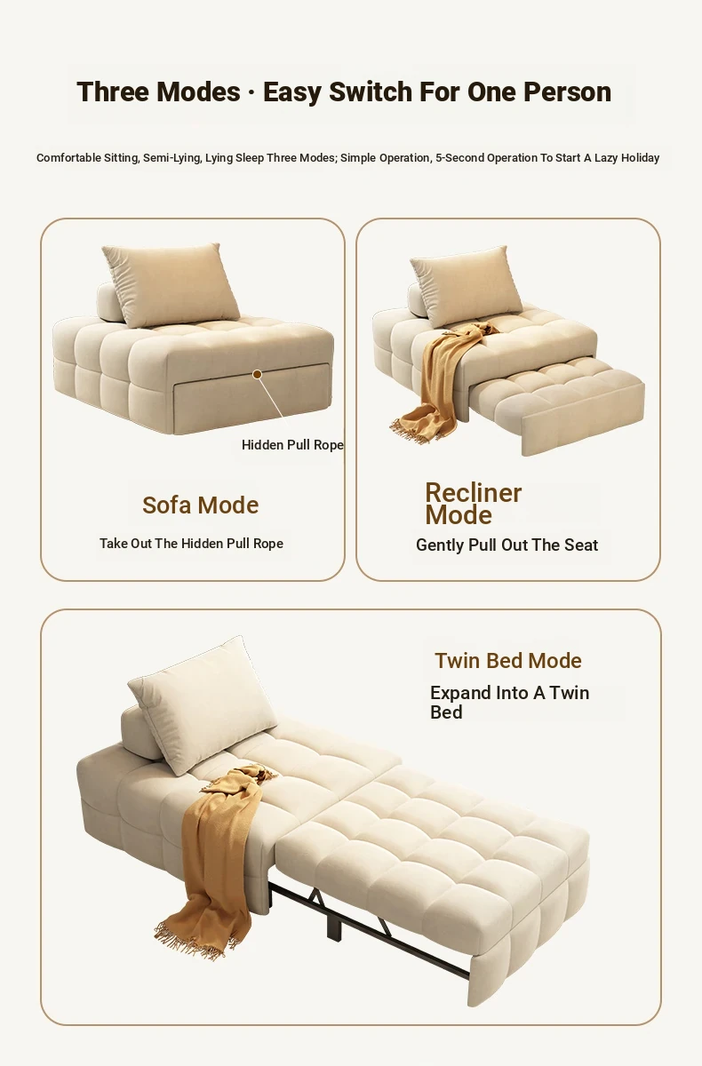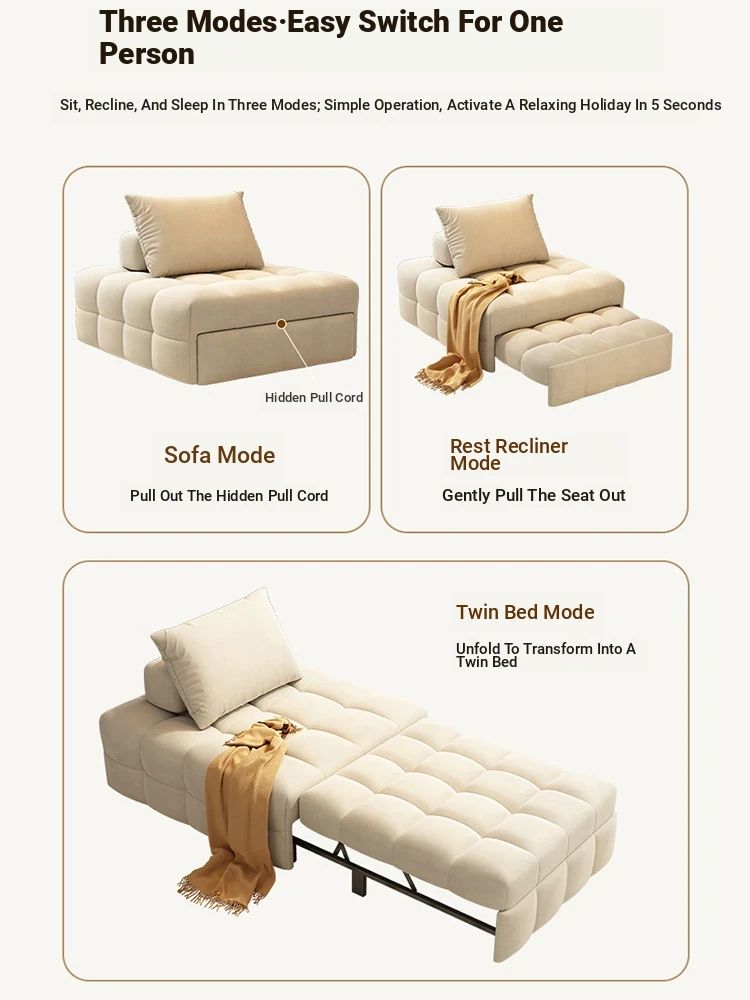 2024 New Multifunctional Foldable Sofa Bed for Small Spaces - Compact Single Size for Living Room, Study, or Balcony - Stylish and Versatile Puff Design