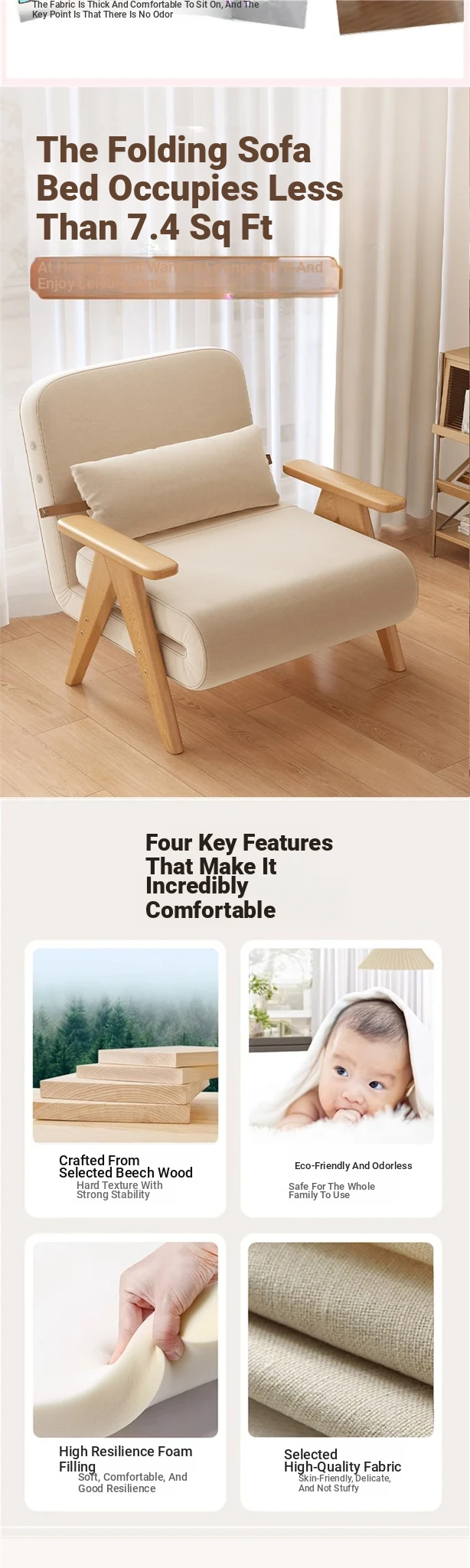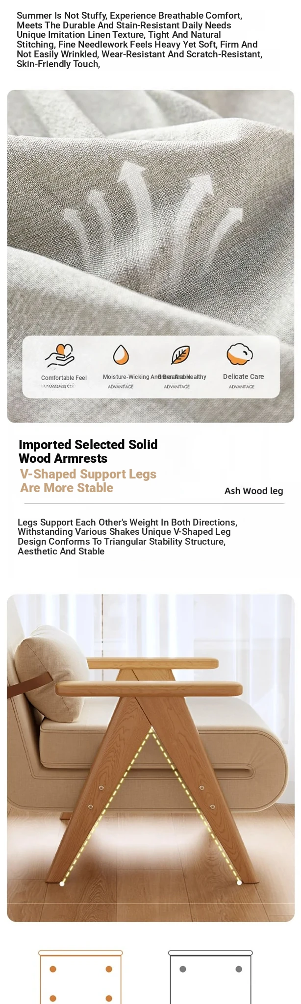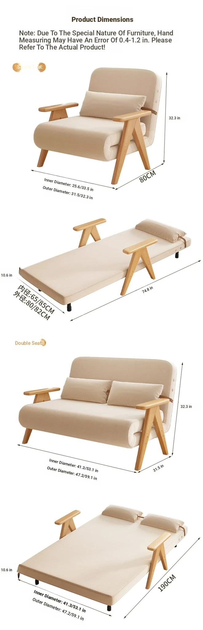 31.50in sofa bed "breathable cotton and linen" home delivery