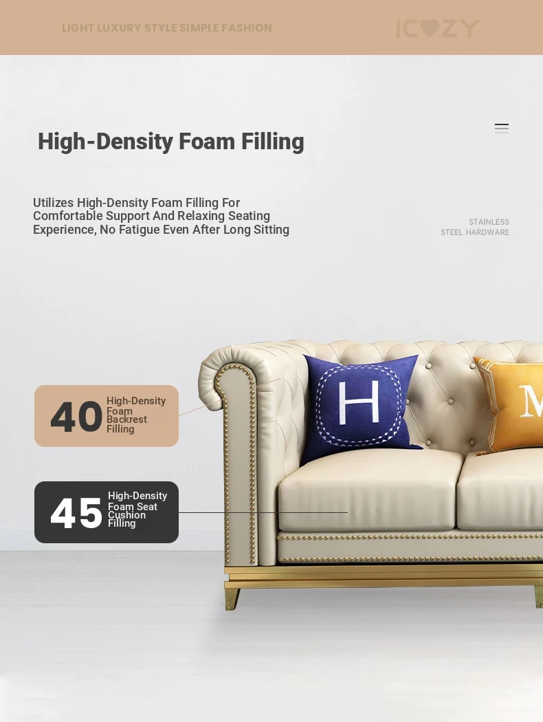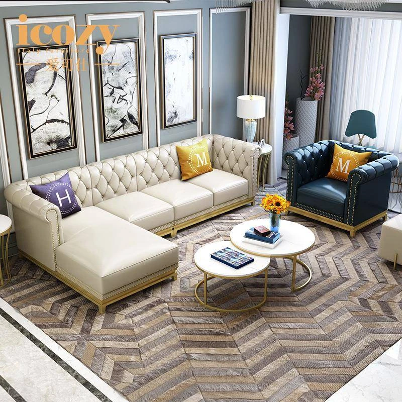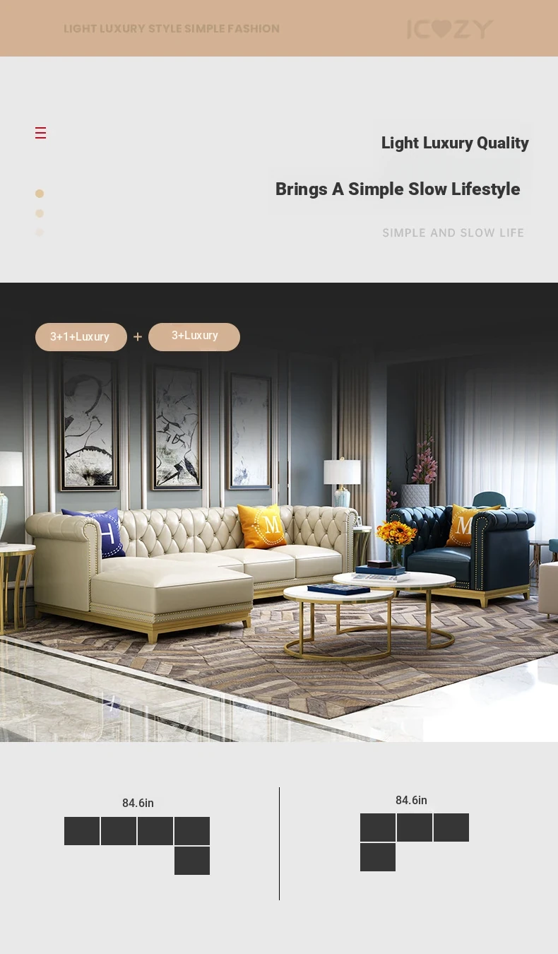 Aike Modern Corner Chaise Lounge - Minimalist Italian Luxury Sofa for Villas, Elegant Combination Design for Stylish Living Spaces.