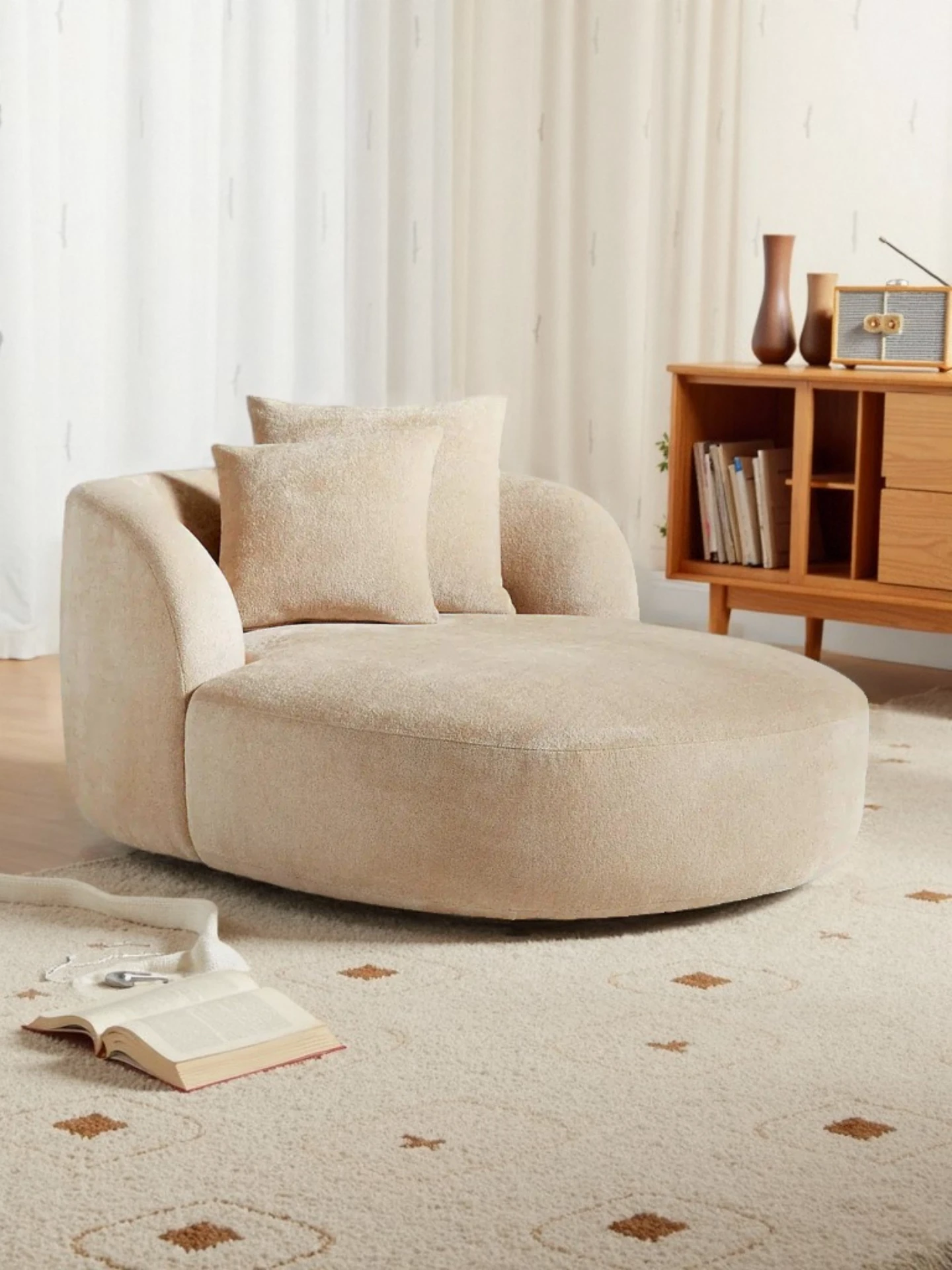 American Light Luxury Fabric Chaise Lounge - Vintage French Single Sofa Bed - Custom Solid Wood Leisure Recliner for Bedroom
