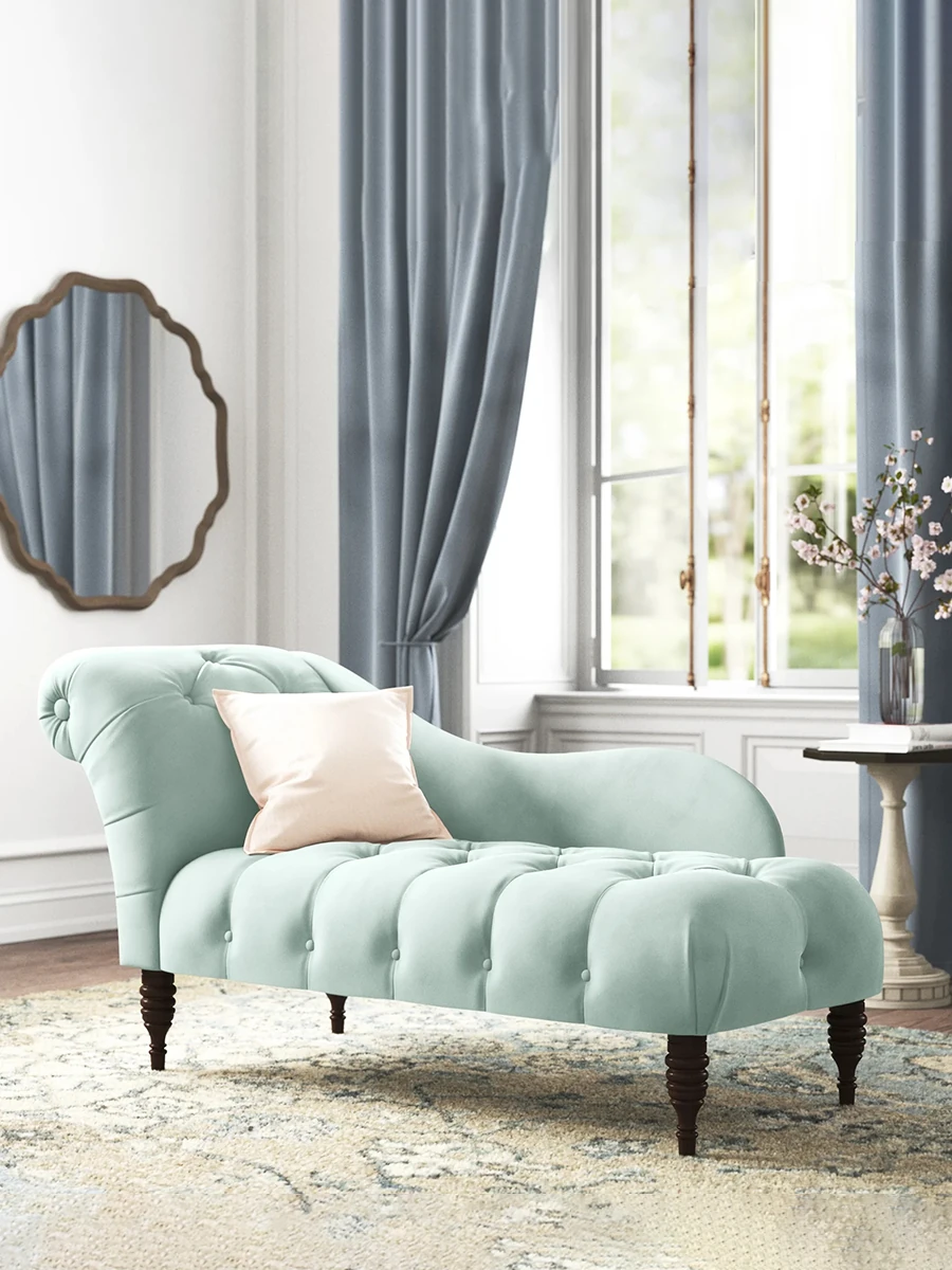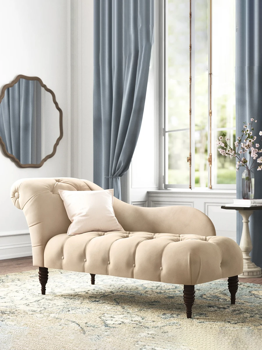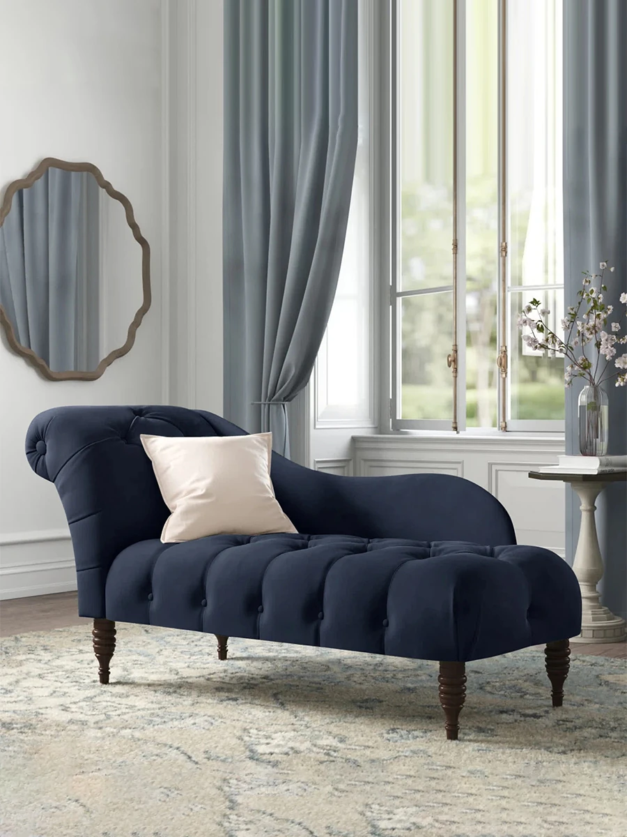 American-style Luxury Velvet Single Chaise Lounge Chair for Balcony - Modern Minimalist Design for Small Spaces, Featuring Elegant Tufted Detailing