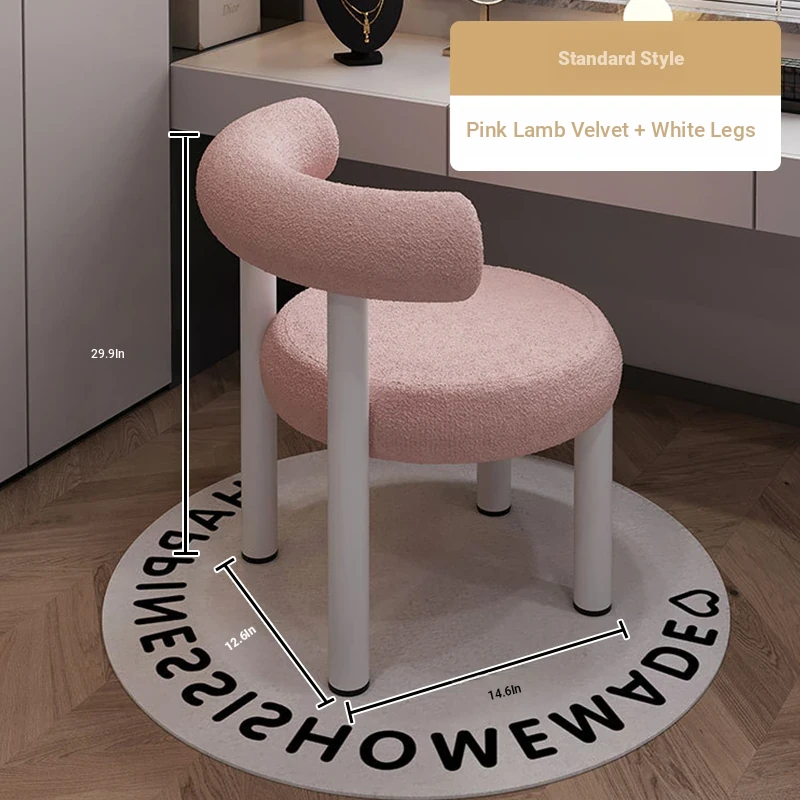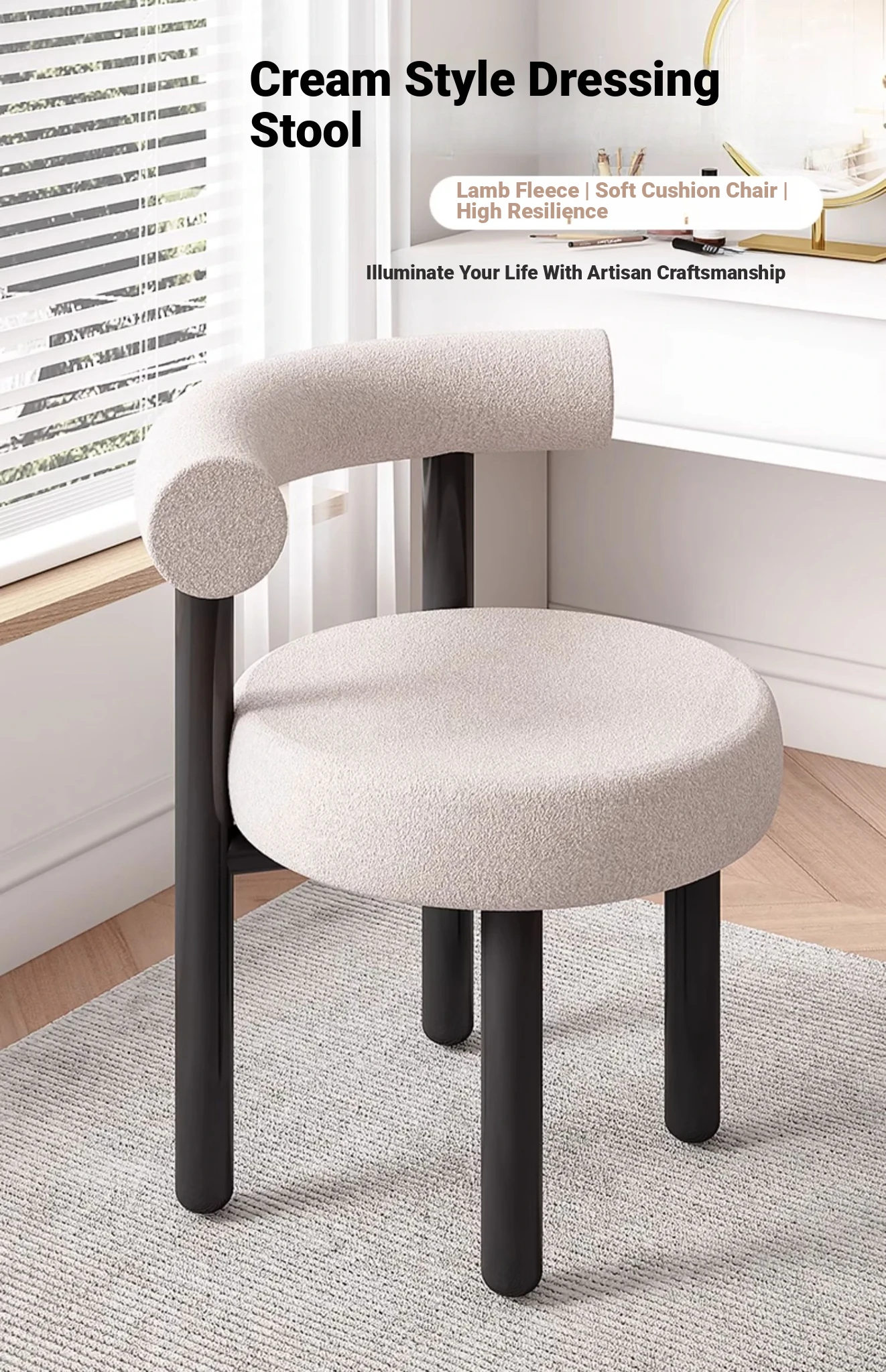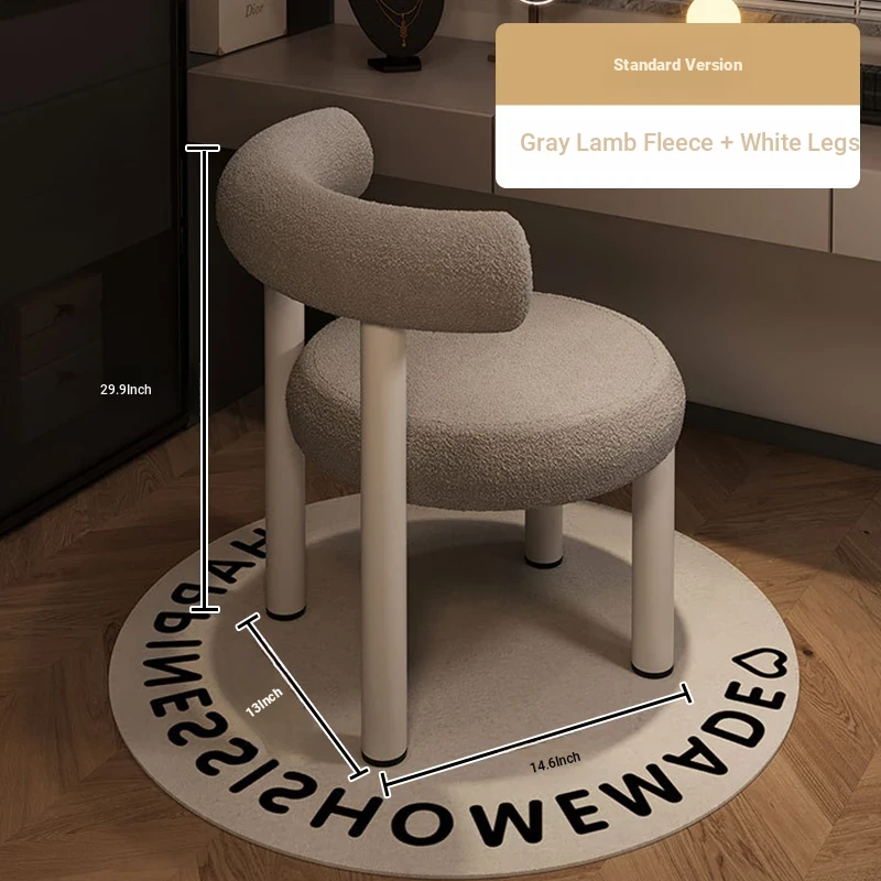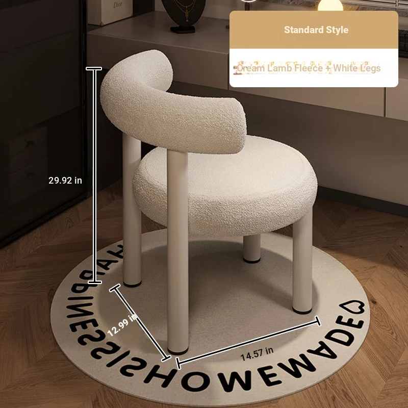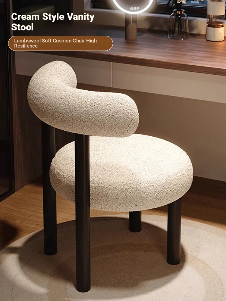 Cozy French-Style Vanity Stool for Girls’ Bedrooms - Plush Lamb Wool Makeup Chair with Backrest, Perfect for Long Sitting Sessions, Trendy Design for Your Dressing Table