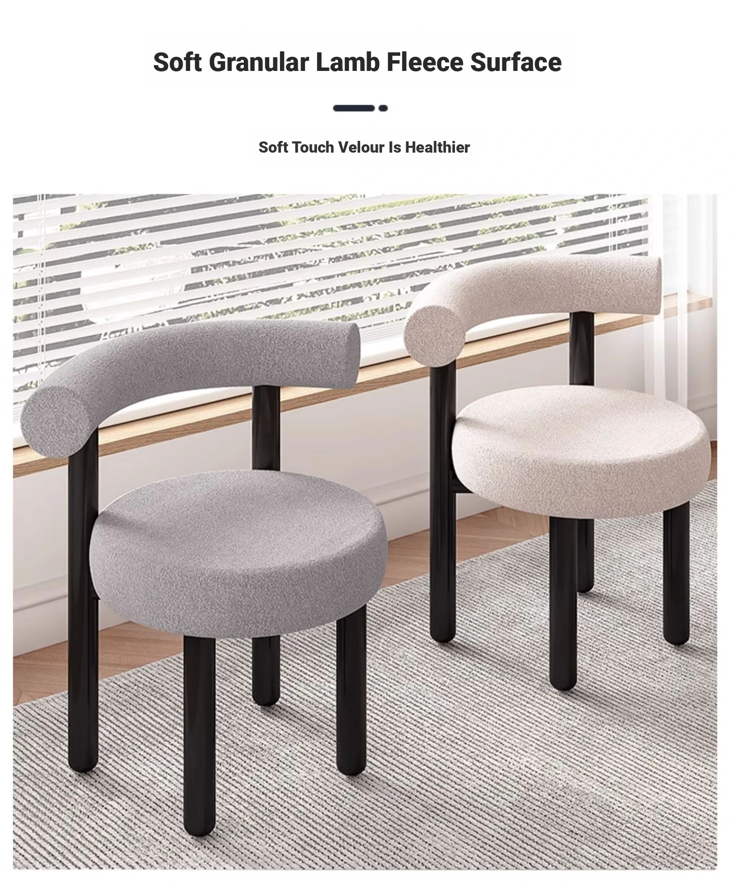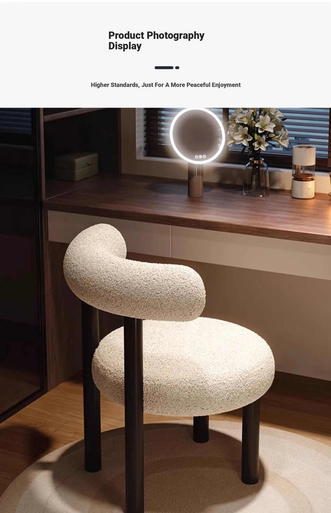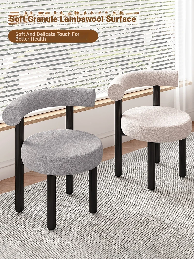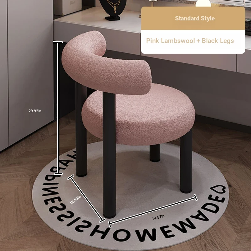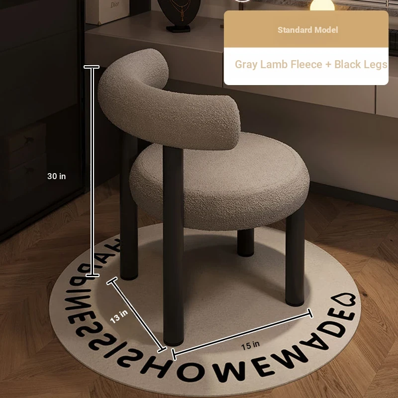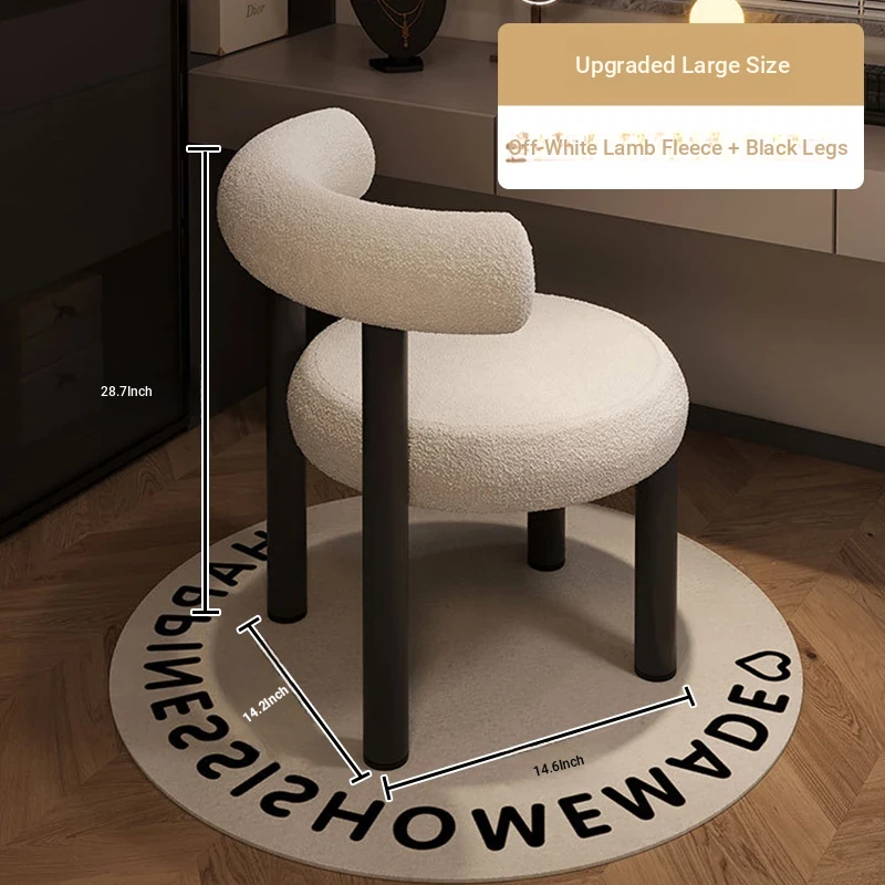Cozy French-Style Vanity Stool for Girls’ Bedrooms - Plush Lamb Wool Makeup Chair with Backrest, Perfect for Long Sitting Sessions, Trendy Design for Your Dressing Table