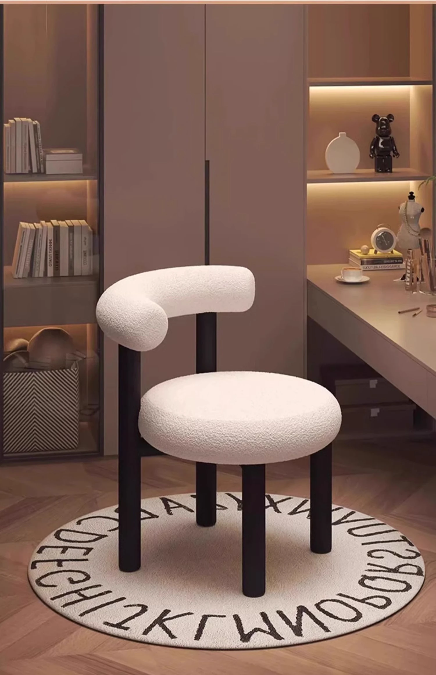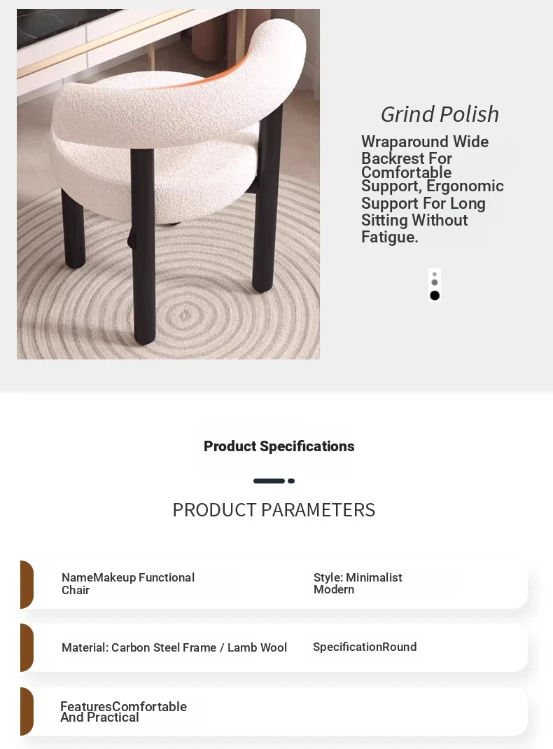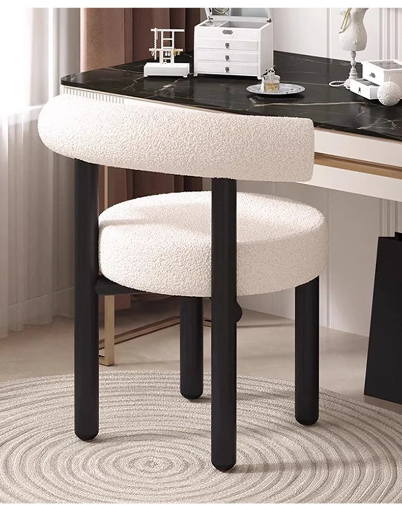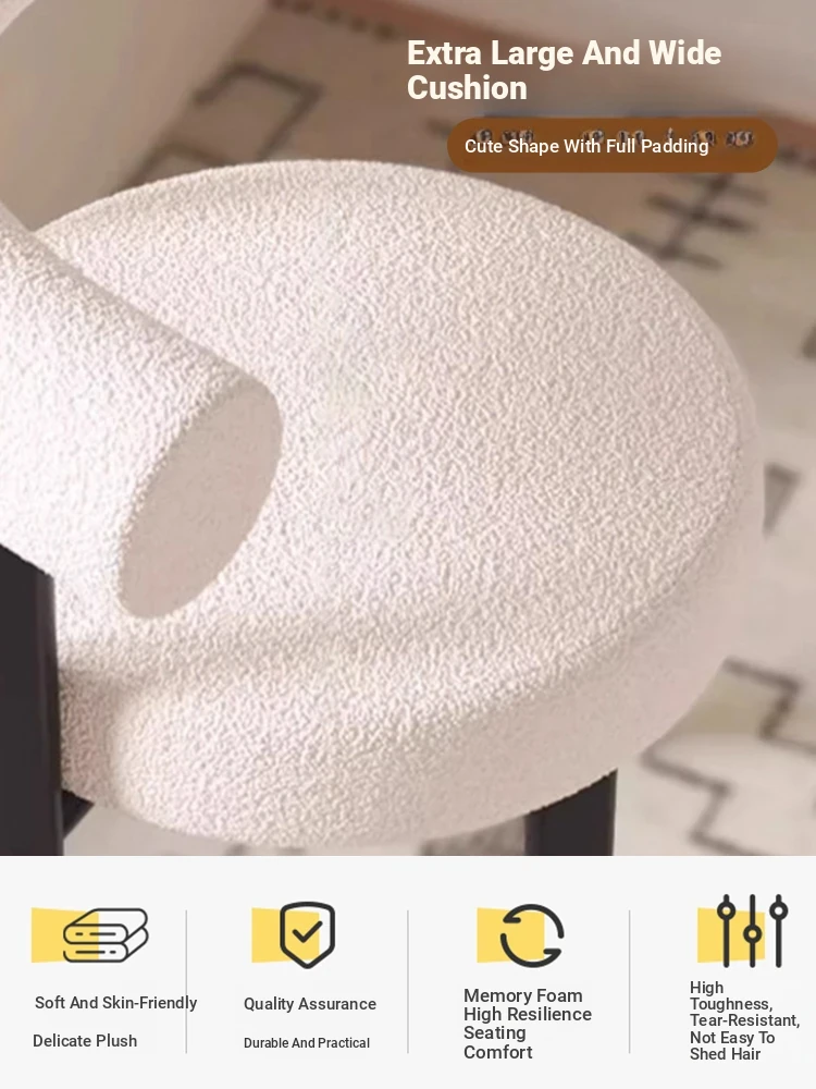 Cozy French-Style Vanity Stool for Girls’ Bedrooms - Plush Lamb Wool Makeup Chair with Backrest, Perfect for Long Sitting Sessions, Trendy Design for Your Dressing Table