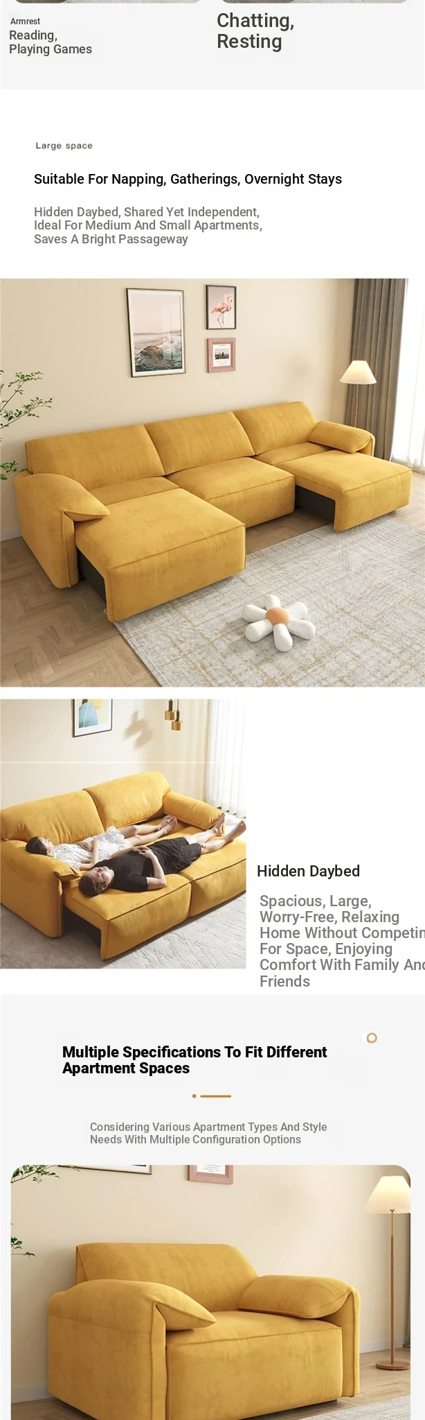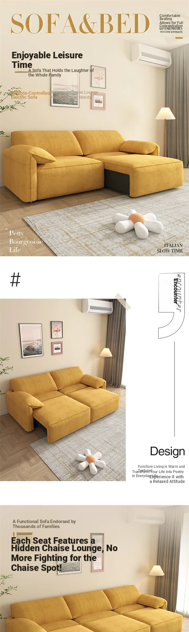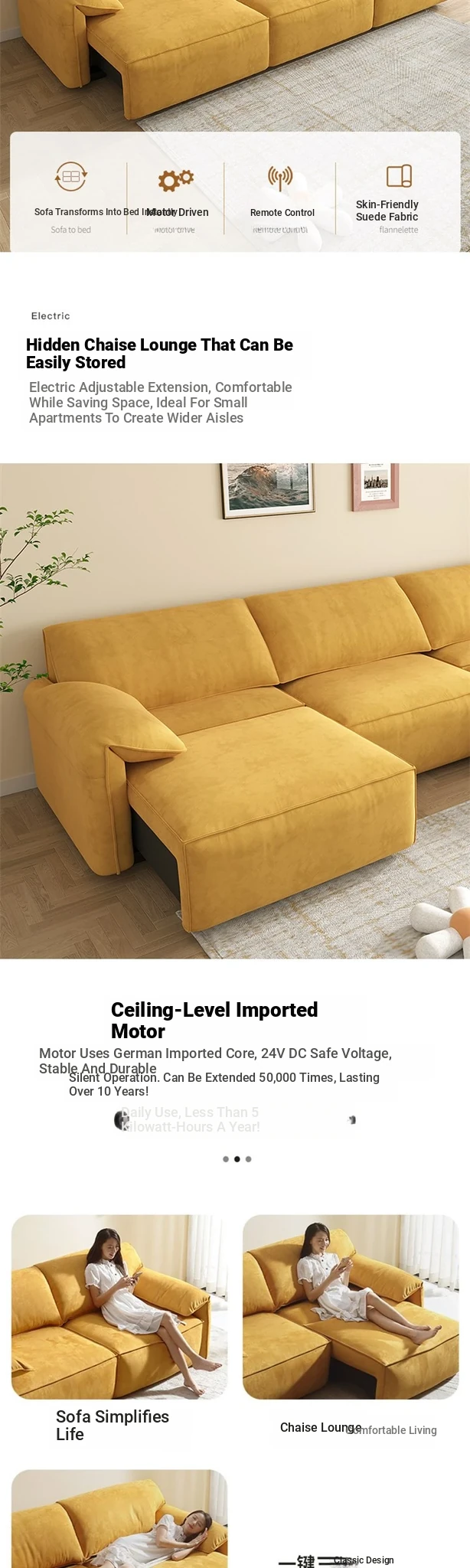 Electric Multifunctional Sofa Bed - Stylish 4-Seater Lazy Couch with Elephant Ear Design for Small Spaces, Perfect for Comfort and Versatility!