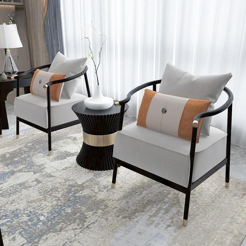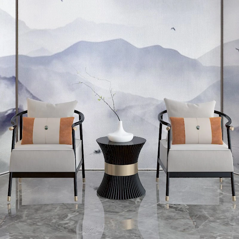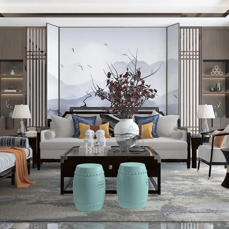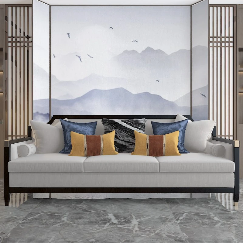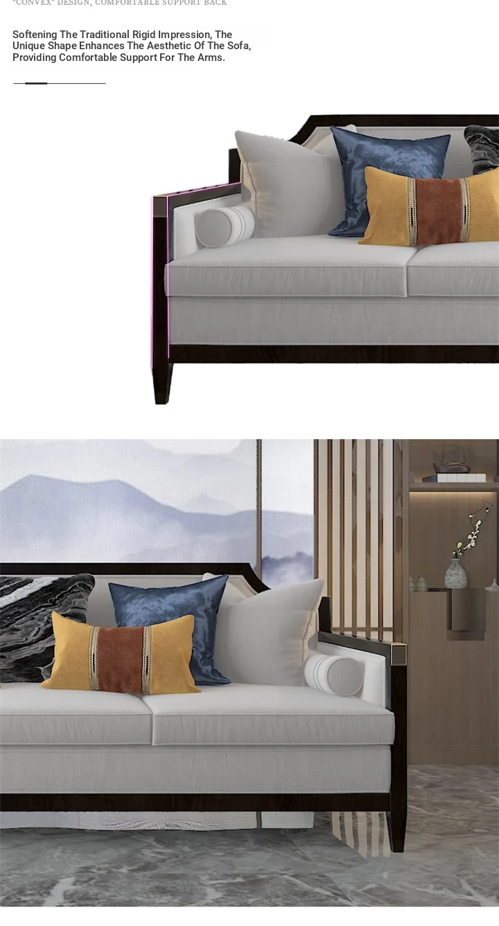 Elegant New Chinese Style Sofa Set - Solid Wood and Fabric Leather Combination for Villa Living Room, Ideal for Model Homes, Chic and Affordable Luxury Furniture