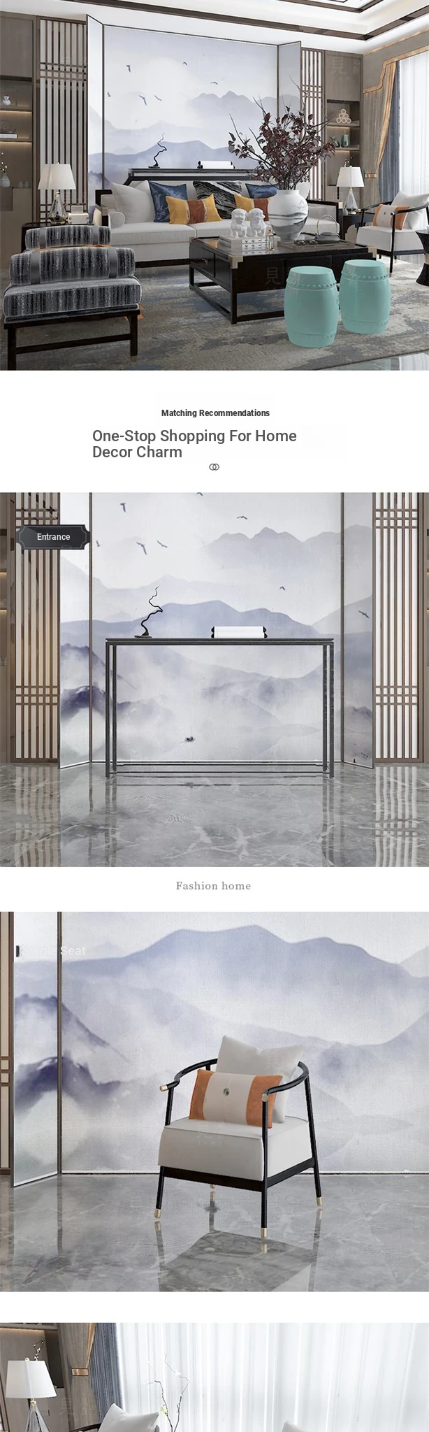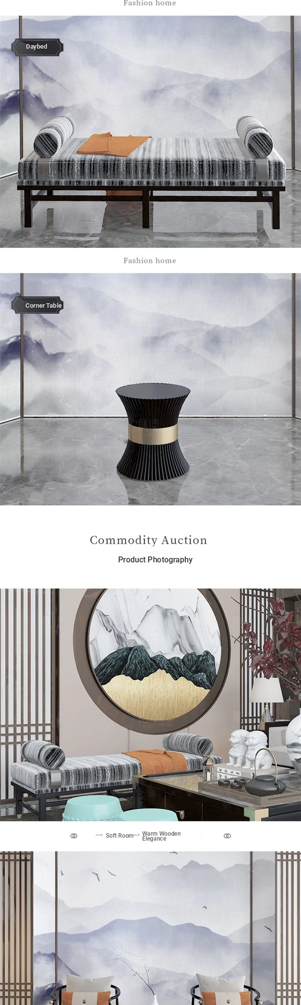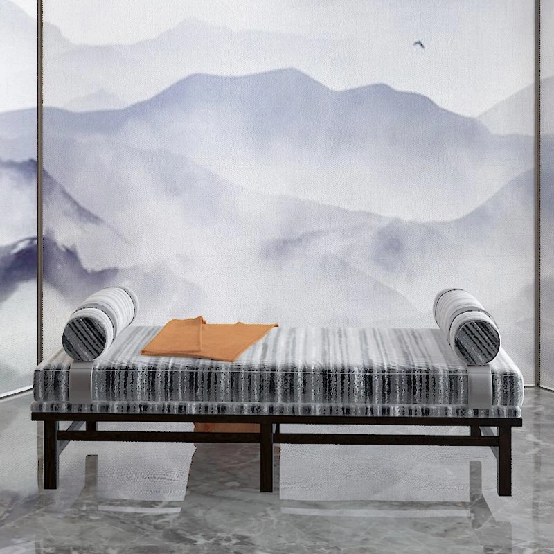Elegant New Chinese Style Sofa Set - Solid Wood and Fabric Leather Combination for Villa Living Room, Ideal for Model Homes, Chic and Affordable Luxury Furniture