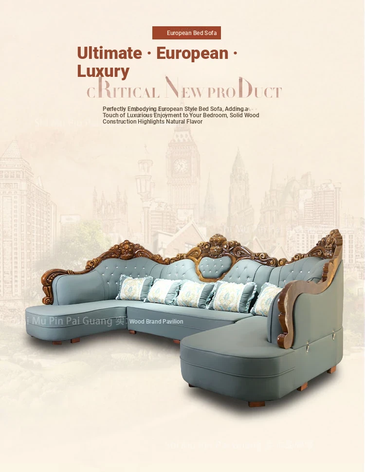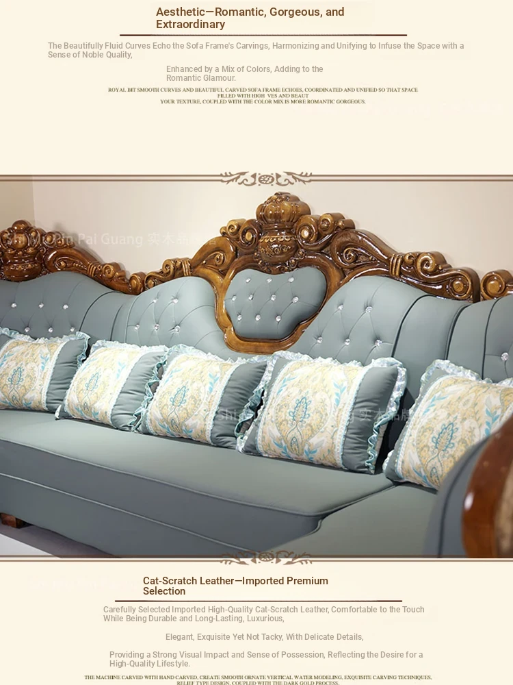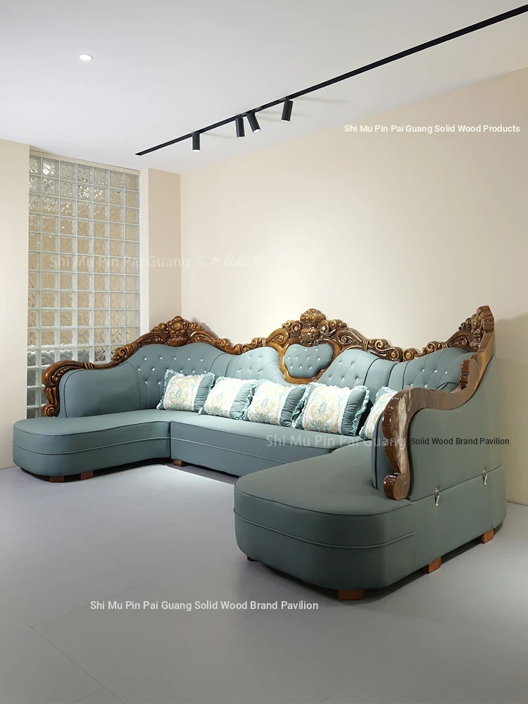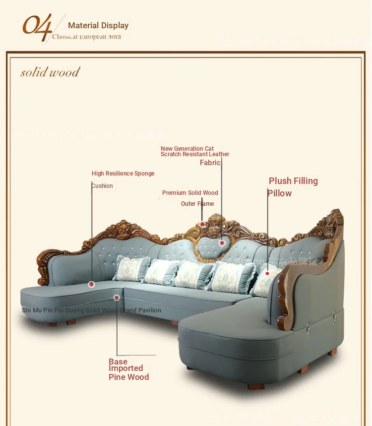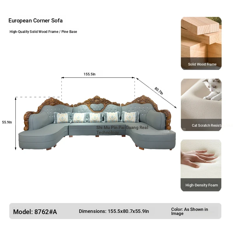 FIMASH Classic European Style Cat Scratching U-Shaped Sofa - Luxurious High-End Furniture with Button-Tufted and Carved Design for Elegant Villas