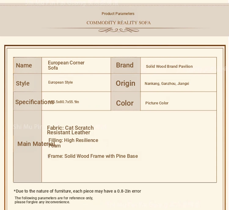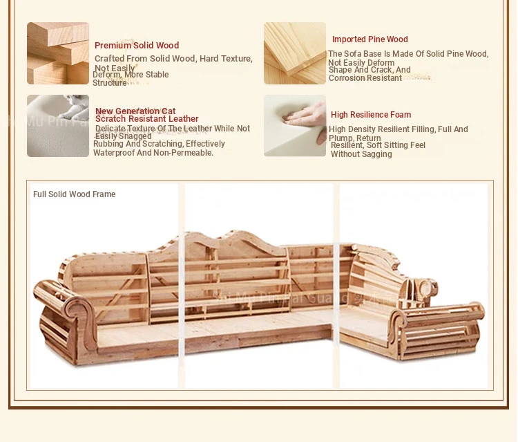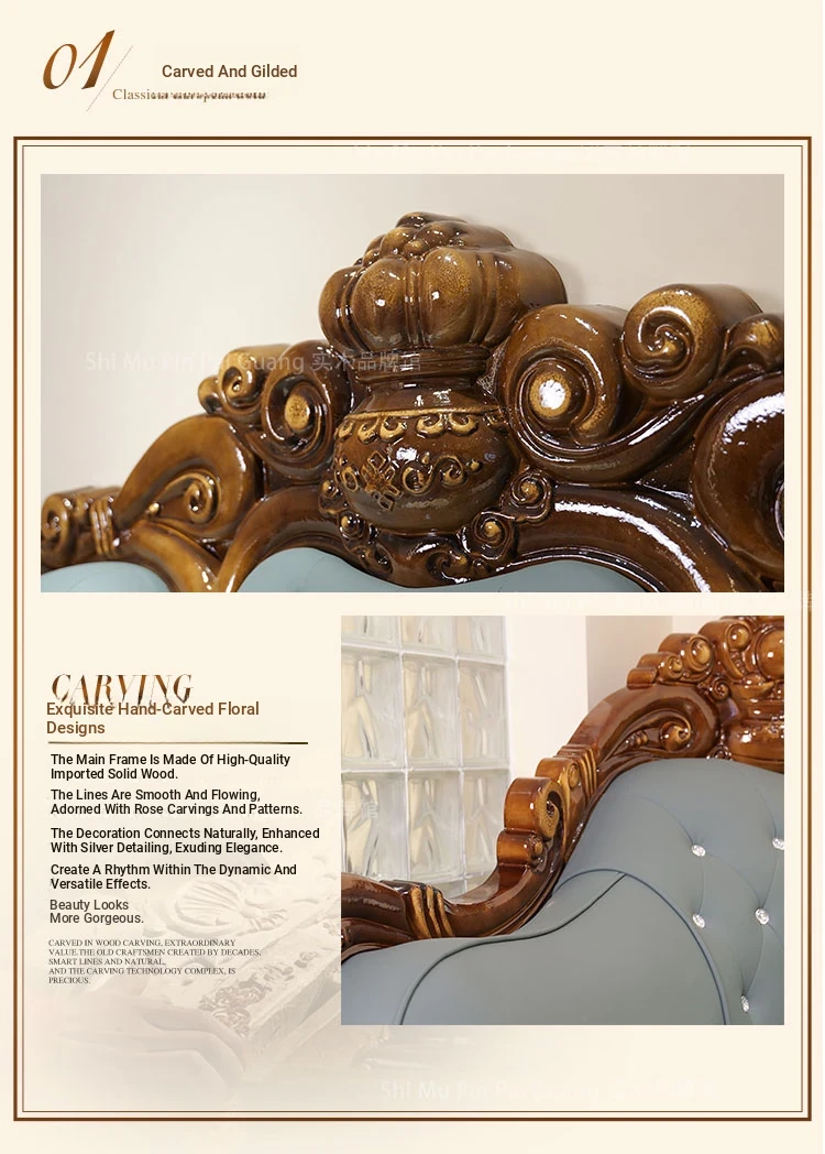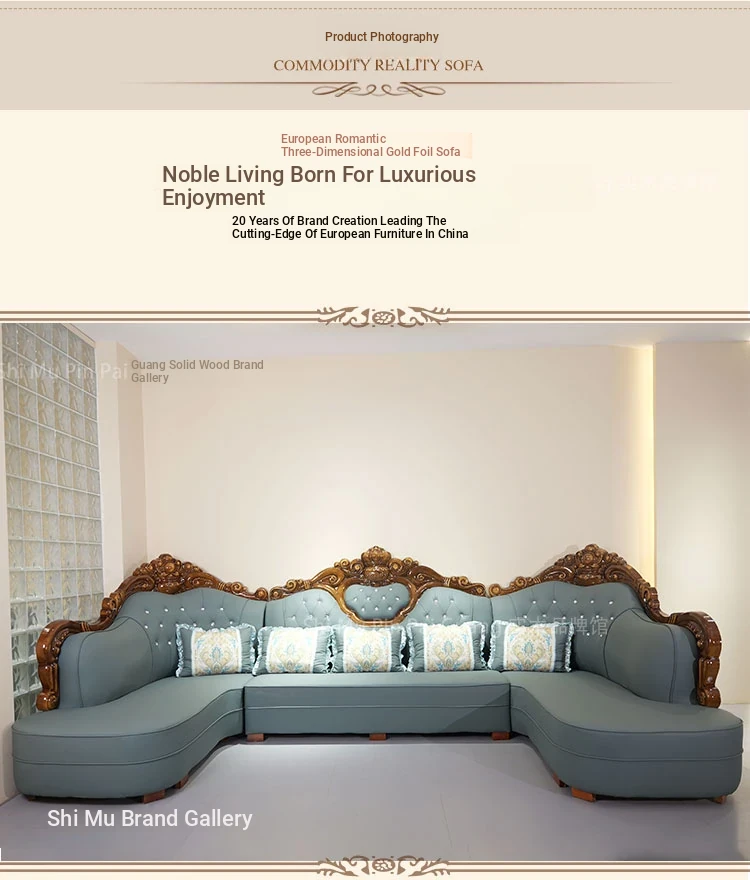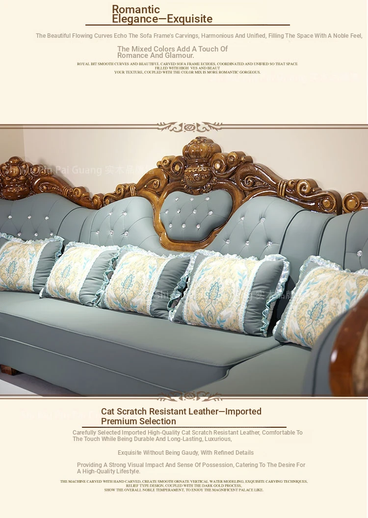 FIMASH Classic European Style Cat Scratching U-Shaped Sofa - Luxurious High-End Furniture with Button-Tufted and Carved Design for Elegant Villas