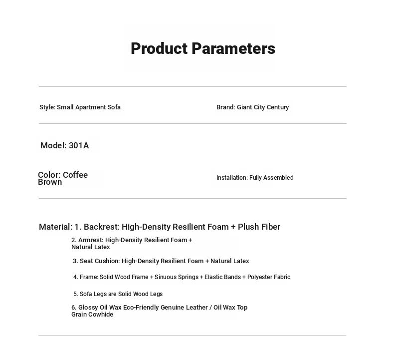 78.74 in small four-seat (oil wax ecological leather) high rebound foam + frame upgrade