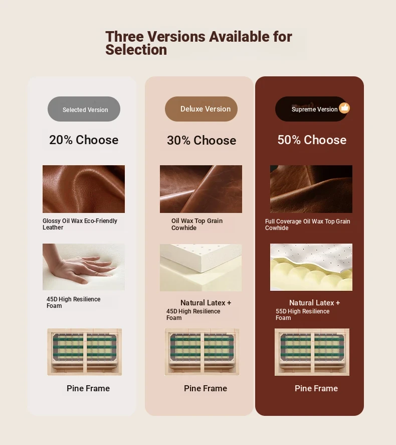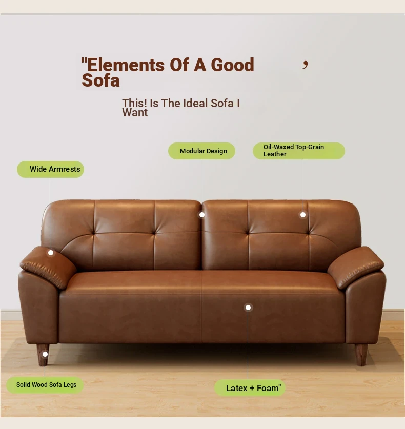 70.87 in tall three-seat (oil wax top cow leather) with thicker latex + frame upgrade