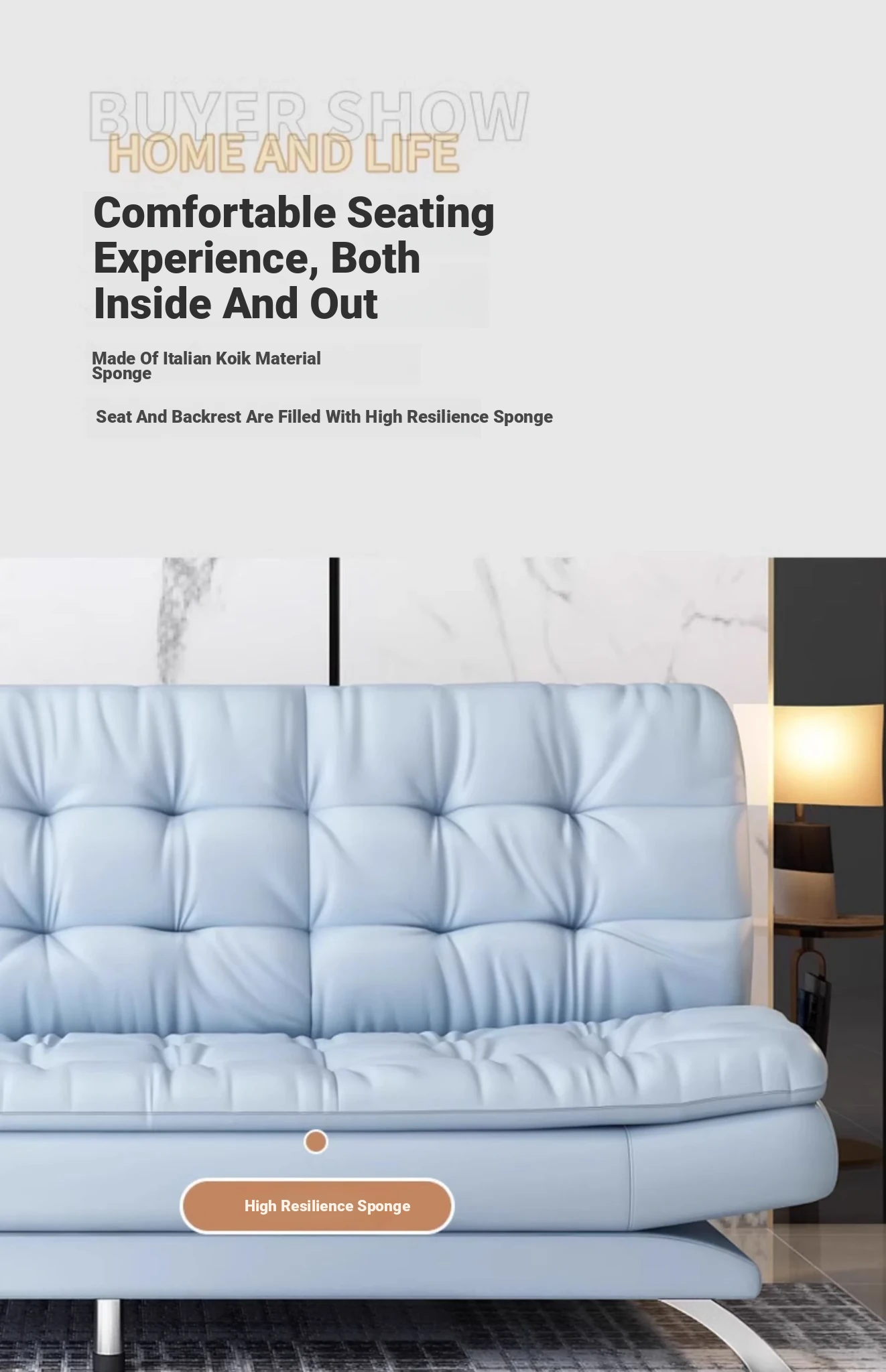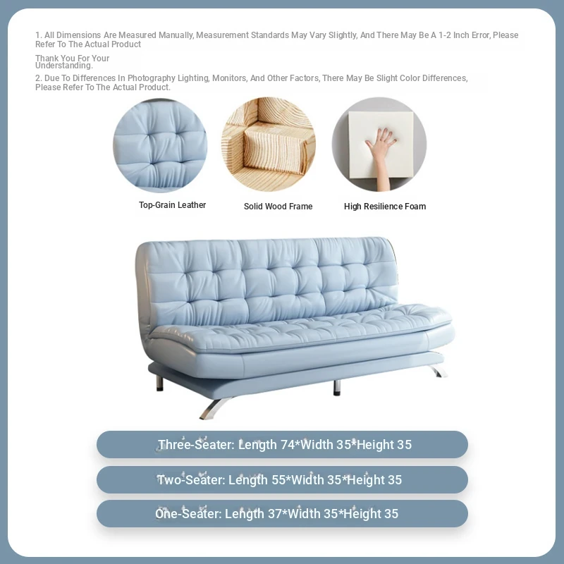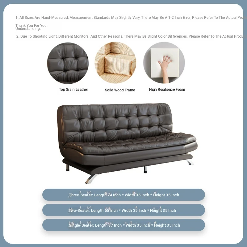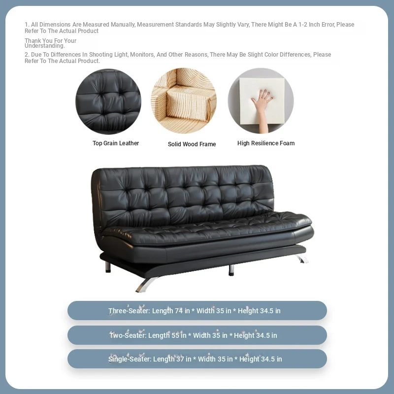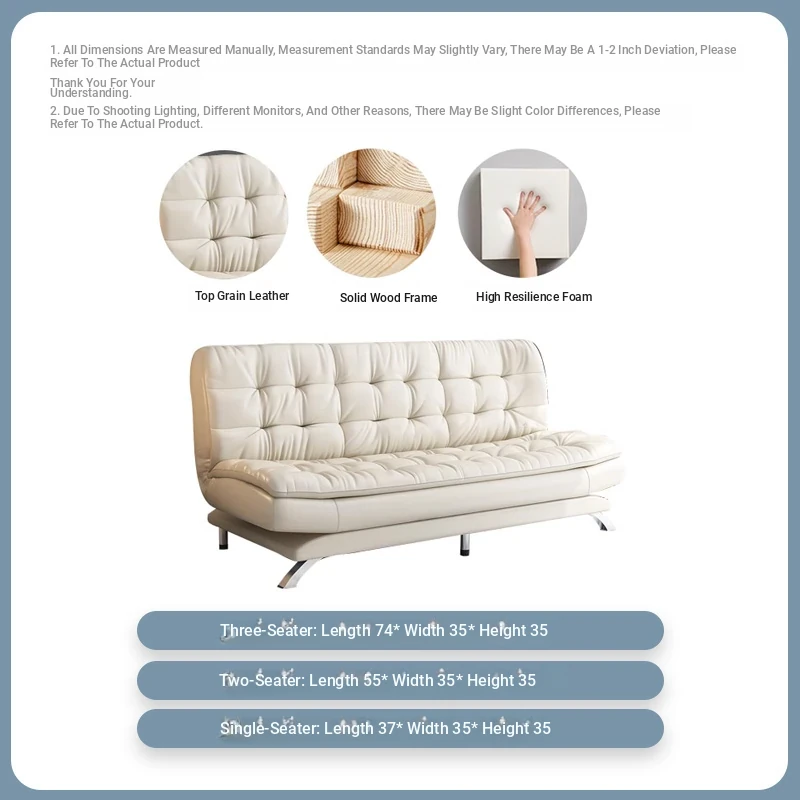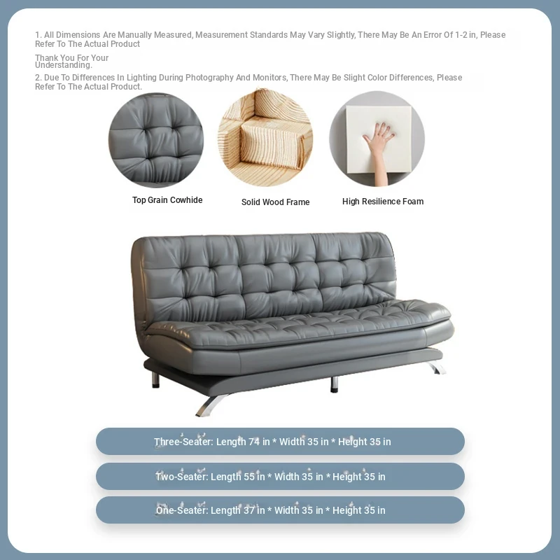Genuine Leather Sofa - Modern Minimalist 3-Seater for Small Spaces, Perfect for Living Rooms & Offices, Features Top-Grade Cowhide and Convertible Bed Function